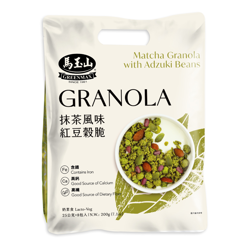 【馬玉山】抹茶風味紅豆穀脆(8入) 冷泡/沖泡/穀脆/高鈣/高纖/含鐵/奶素食/台灣製造 2