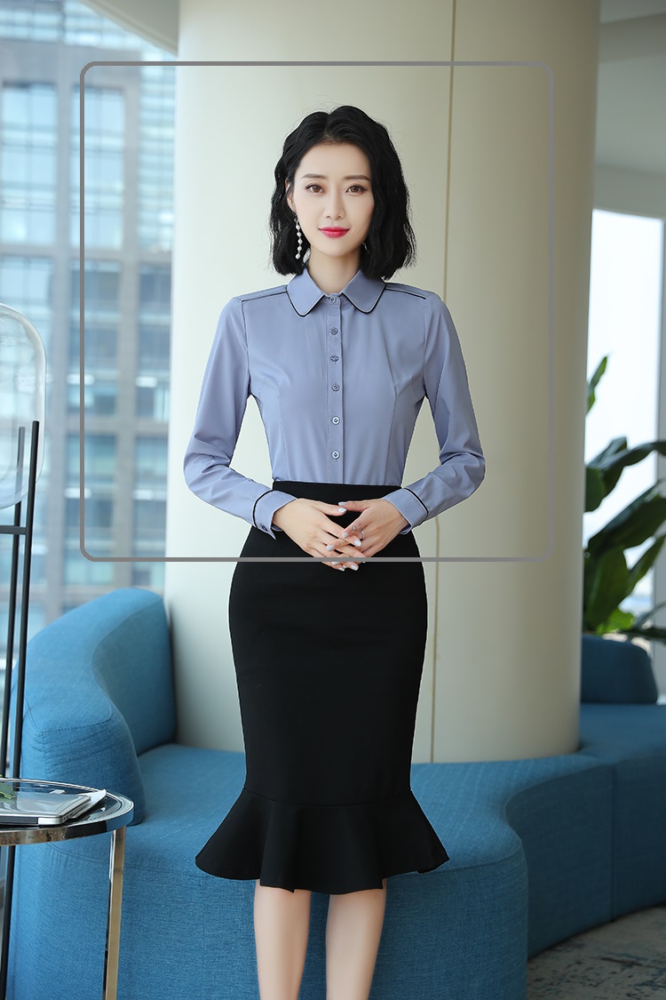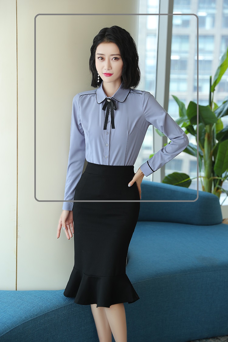 灰姑娘[8Q210-PF]娃娃領配色線條挺直OL長袖襯衫(不含領結)~