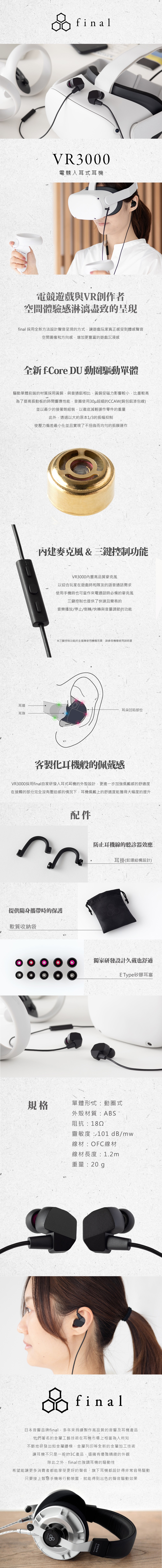 【全館領券再折】日本 final VR3000 電競入耳式耳機 線控耳機 有線耳機 台灣公司貨 保固2年