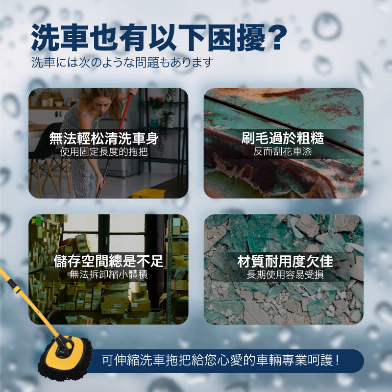 可伸縮洗車拖把都能提供卓越的清潔效果。為您的愛車提供最好的呵護,讓它永遠保持亮麗如新。