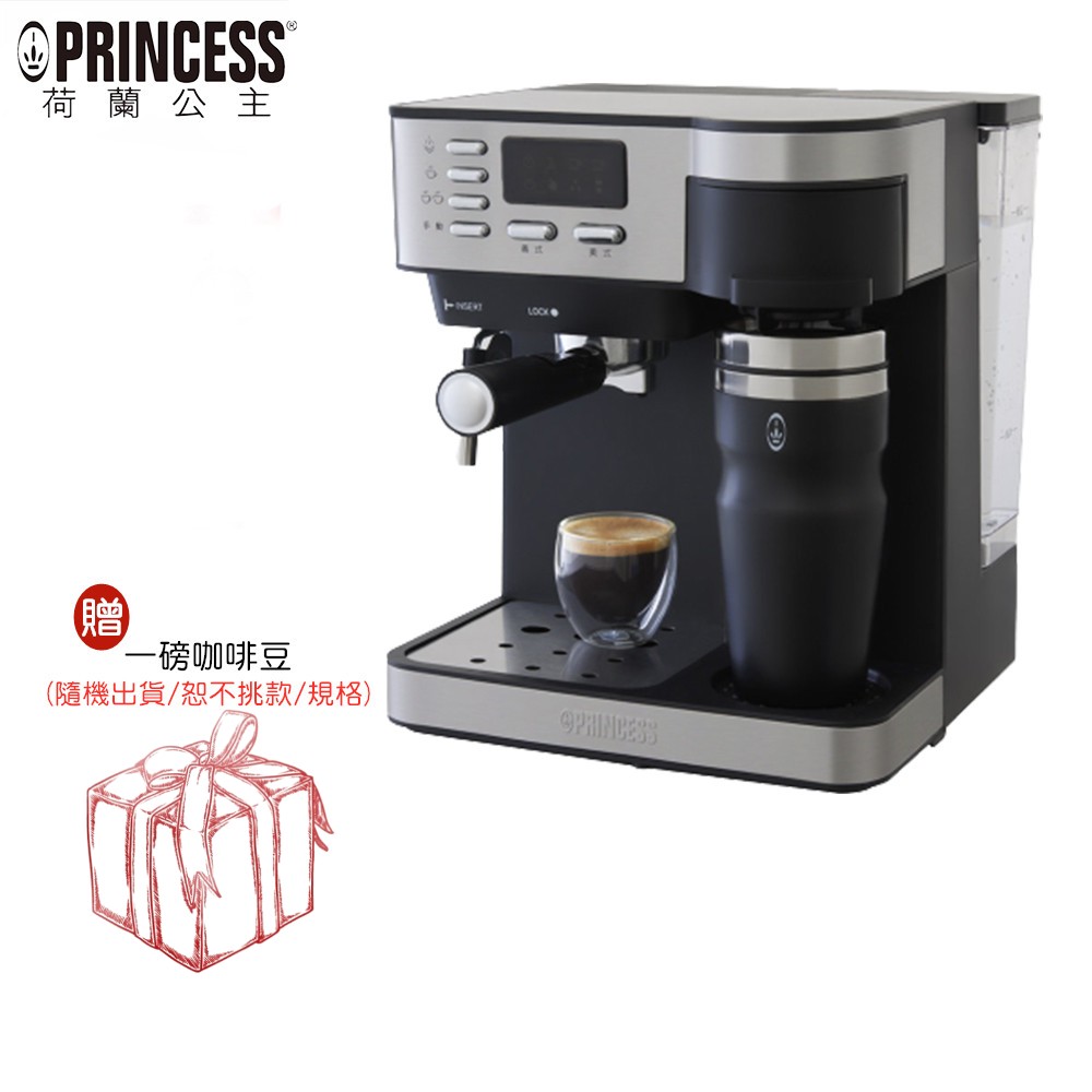 【領券再享優惠+贈一磅咖啡豆】Princess 荷蘭公主典藏半自動義式+美式二合一咖啡機 249409 2