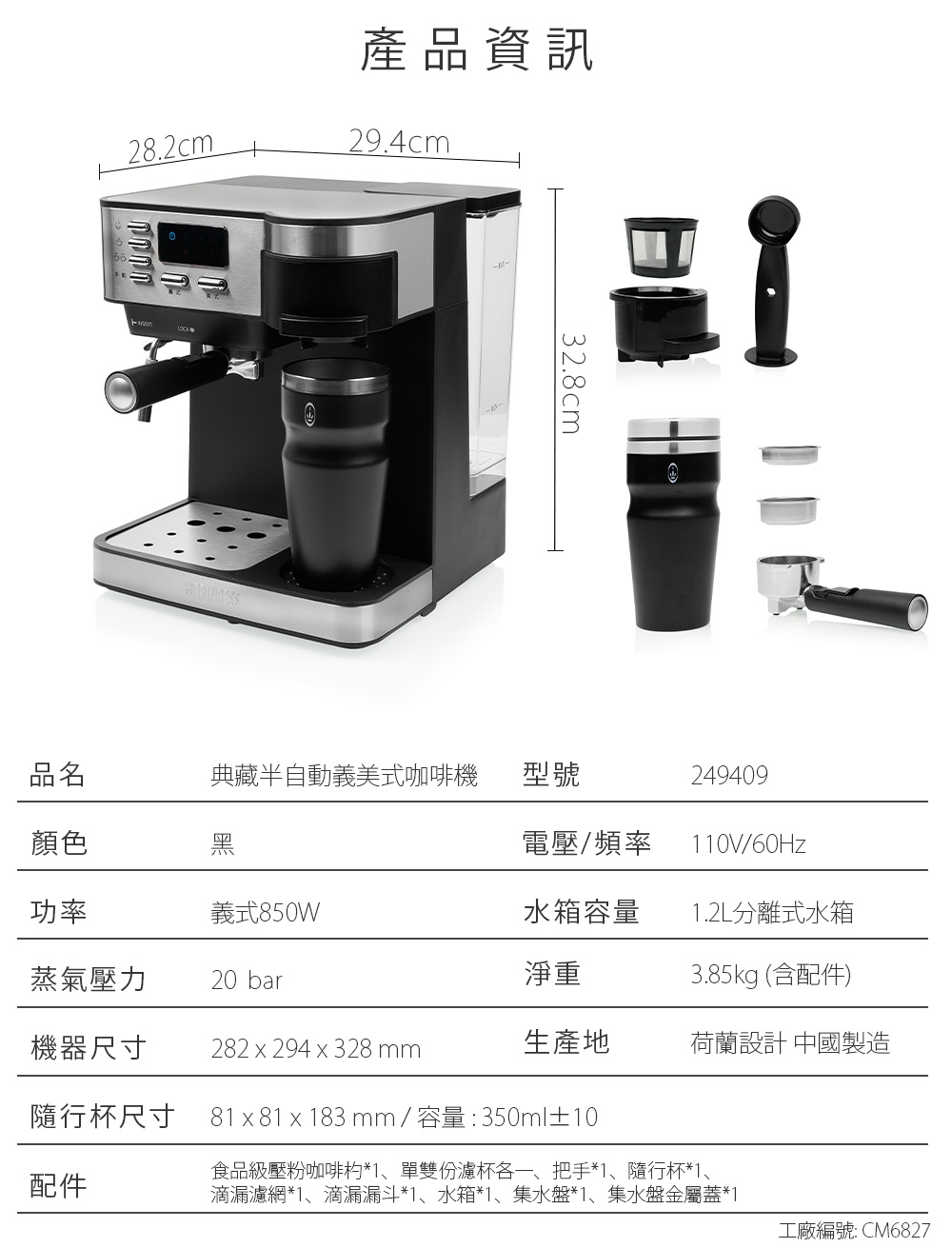 類型    半自動咖啡機, 美式咖啡機, 義式咖啡機