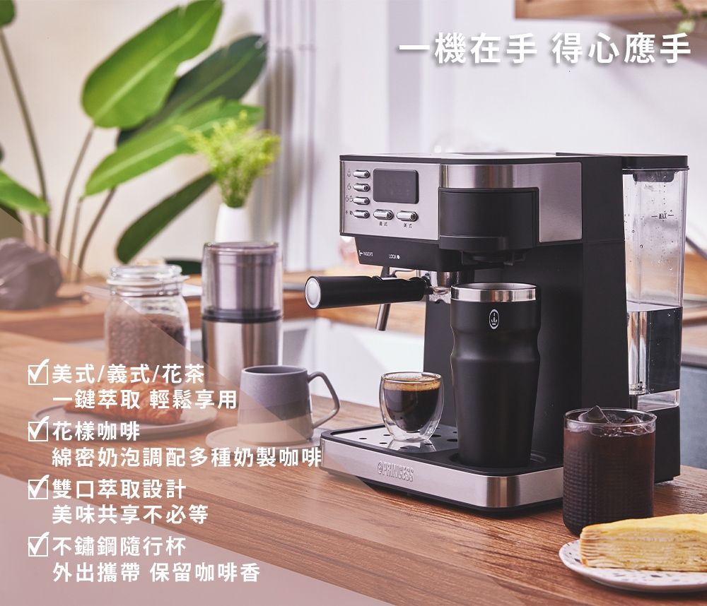 6. 【贈俏皮保溫瓶】Princess 荷蘭公主典藏半自動義式+美式二合一咖啡機 249409