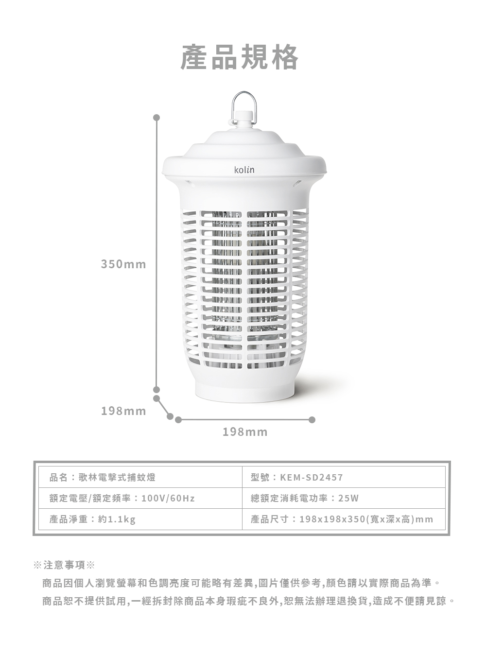 【現貨熱賣】Kolin 歌林 KEM-SD2457 25W光感應防水電擊式捕蚊燈 電蚊燈 滅蚊燈 蚊蟲剋星