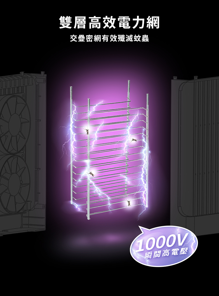 1000V瞬間高壓,迅速擊斃蚊蟲