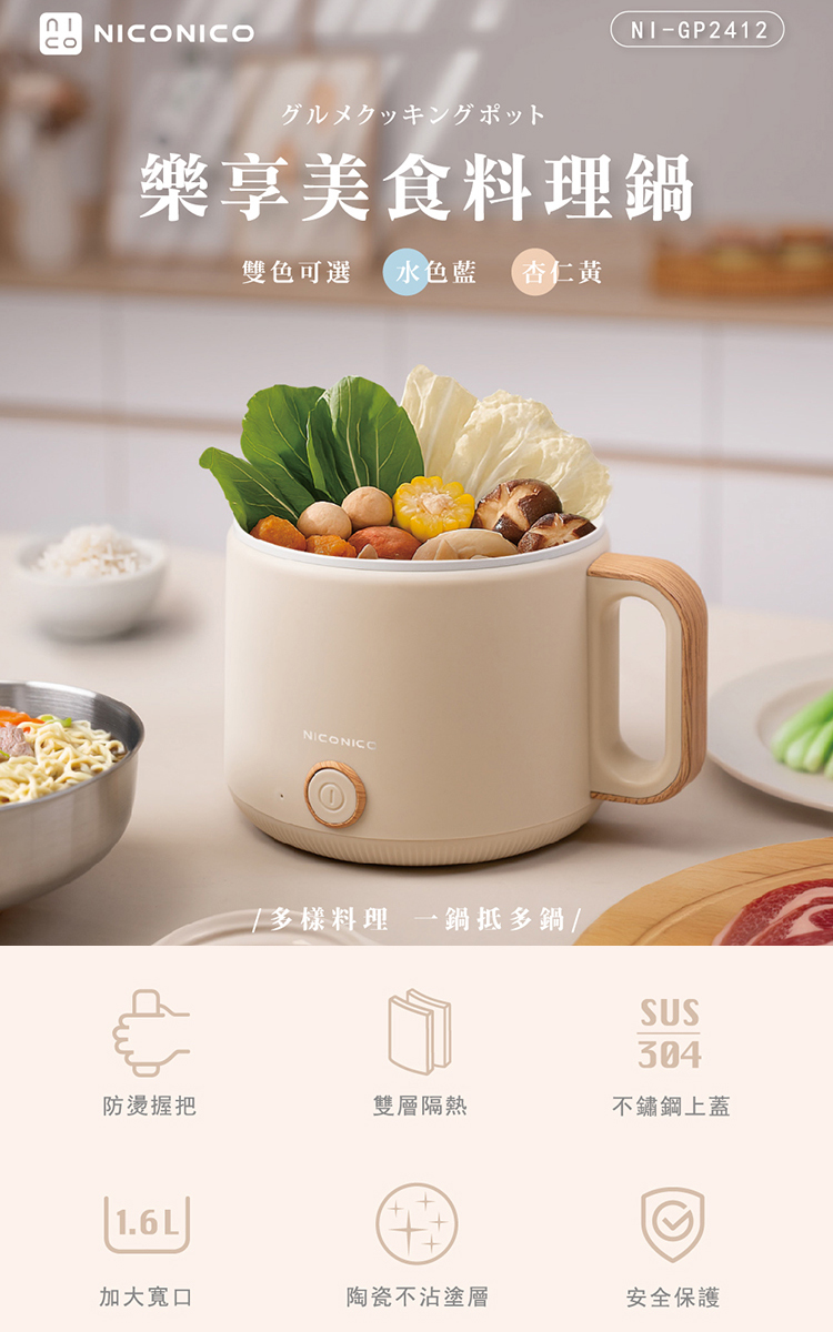 【兩入超值組 限量特價】NICONICO 1.6L樂享美食陶瓷料理鍋 電火鍋 陶瓷鍋 奶油鍋 NI-GP2412 0