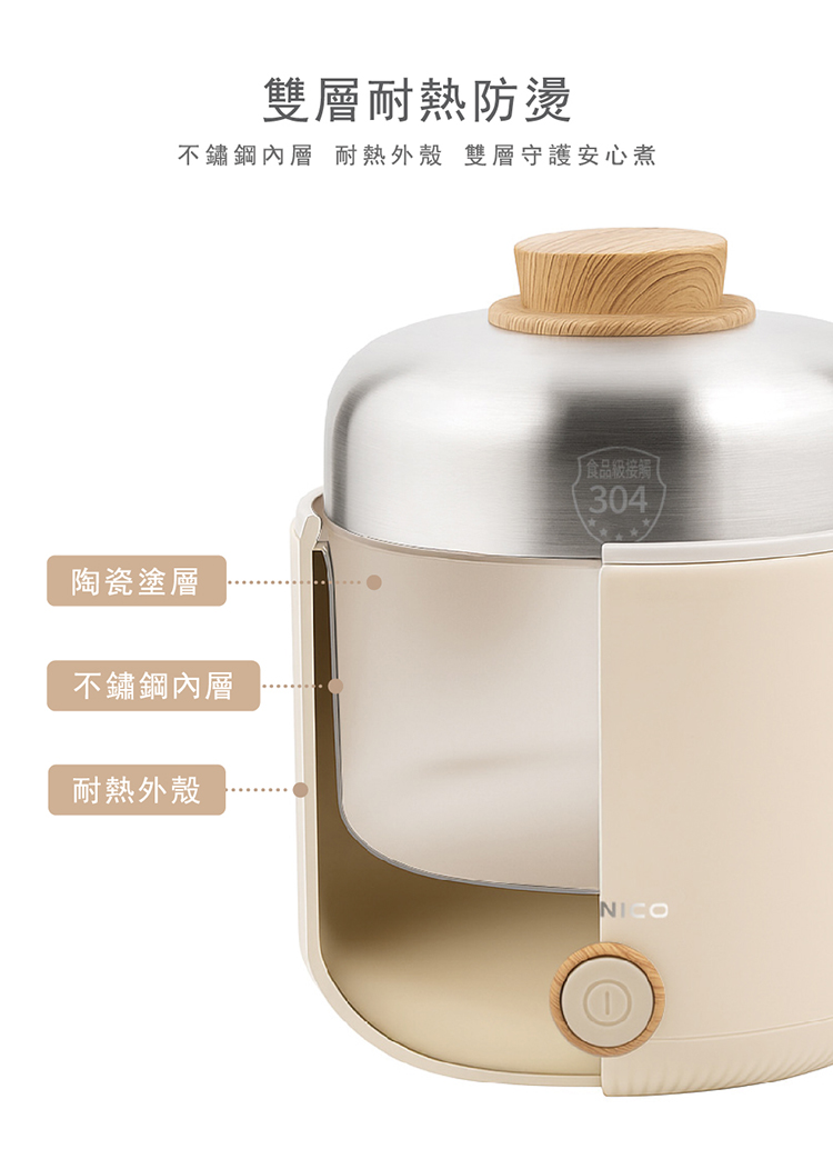 商品材質:內鍋塗層-陶瓷塗層、上蓋-304不鏽鋼