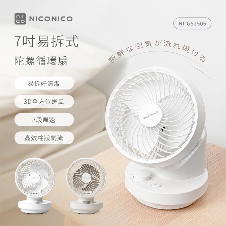 【兩入超值組 限量特價】NICONICO NI-GS2506 7吋易拆式陀螺循環扇/循環風扇/風扇/電風扇 2