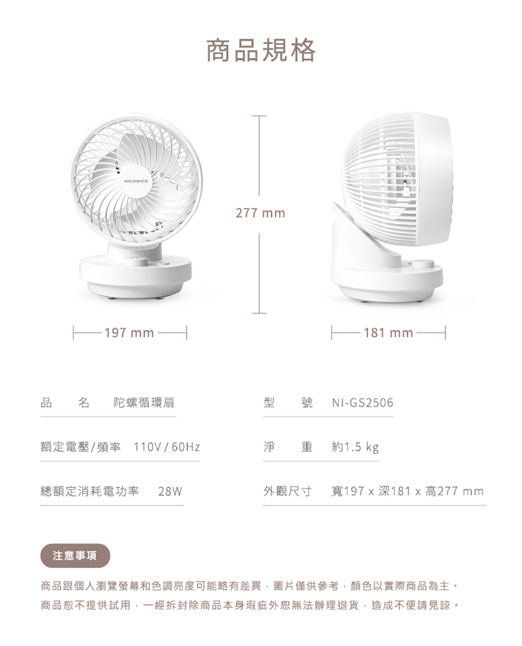 商品型號:NI-GS2506 7吋易拆式陀螺循環扇