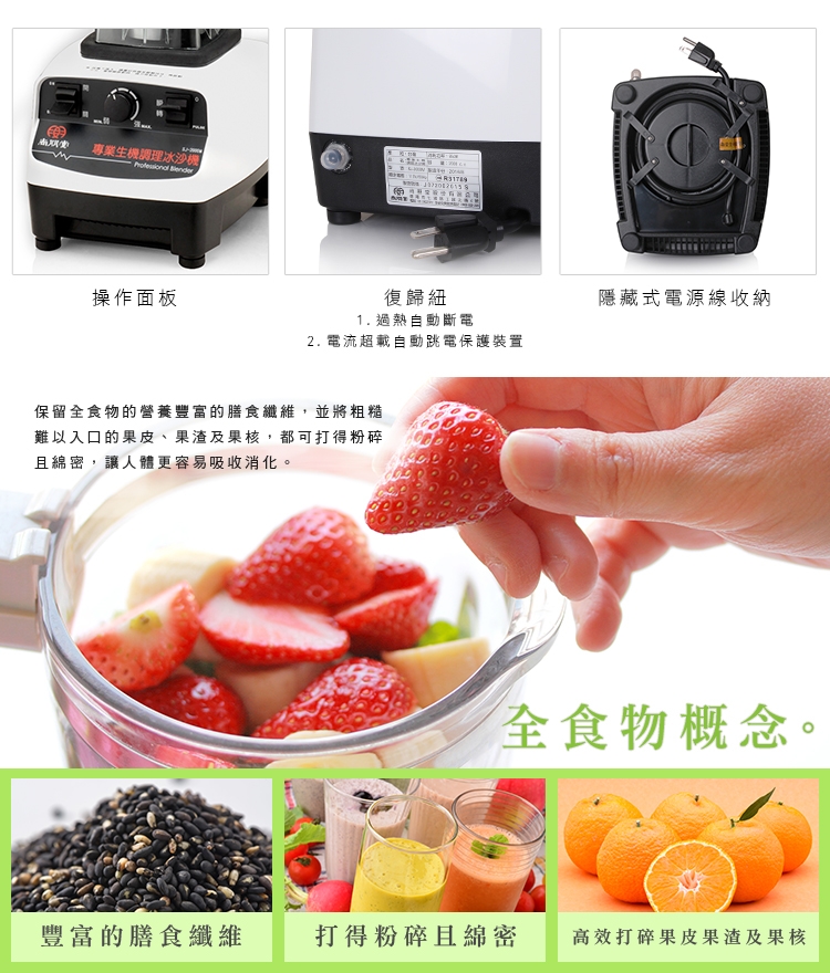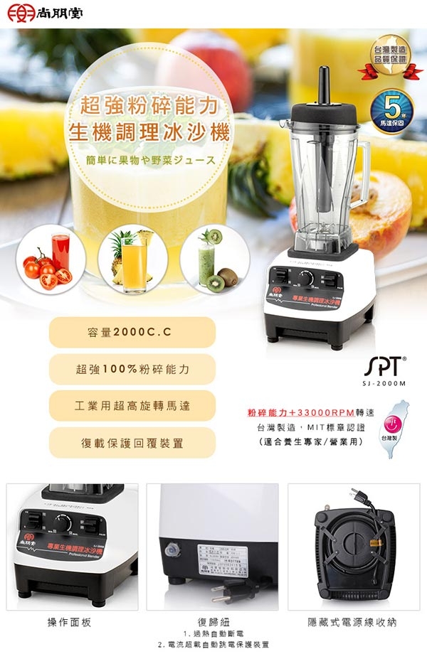 【附原廠養生生機食譜】SPT 尚朋堂 2.0L生機調理冰沙果汁機 SJ-2000M