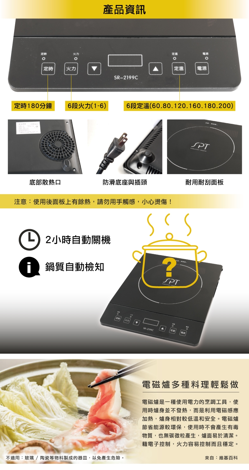【SPT 尚朋堂】IH超薄變頻電磁爐 110V專用 SR-2199C