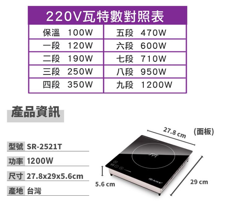 【SPT 尚朋堂】IH變頻崁入式電磁爐 110V-220V皆適用 台灣製造 SR-2521T