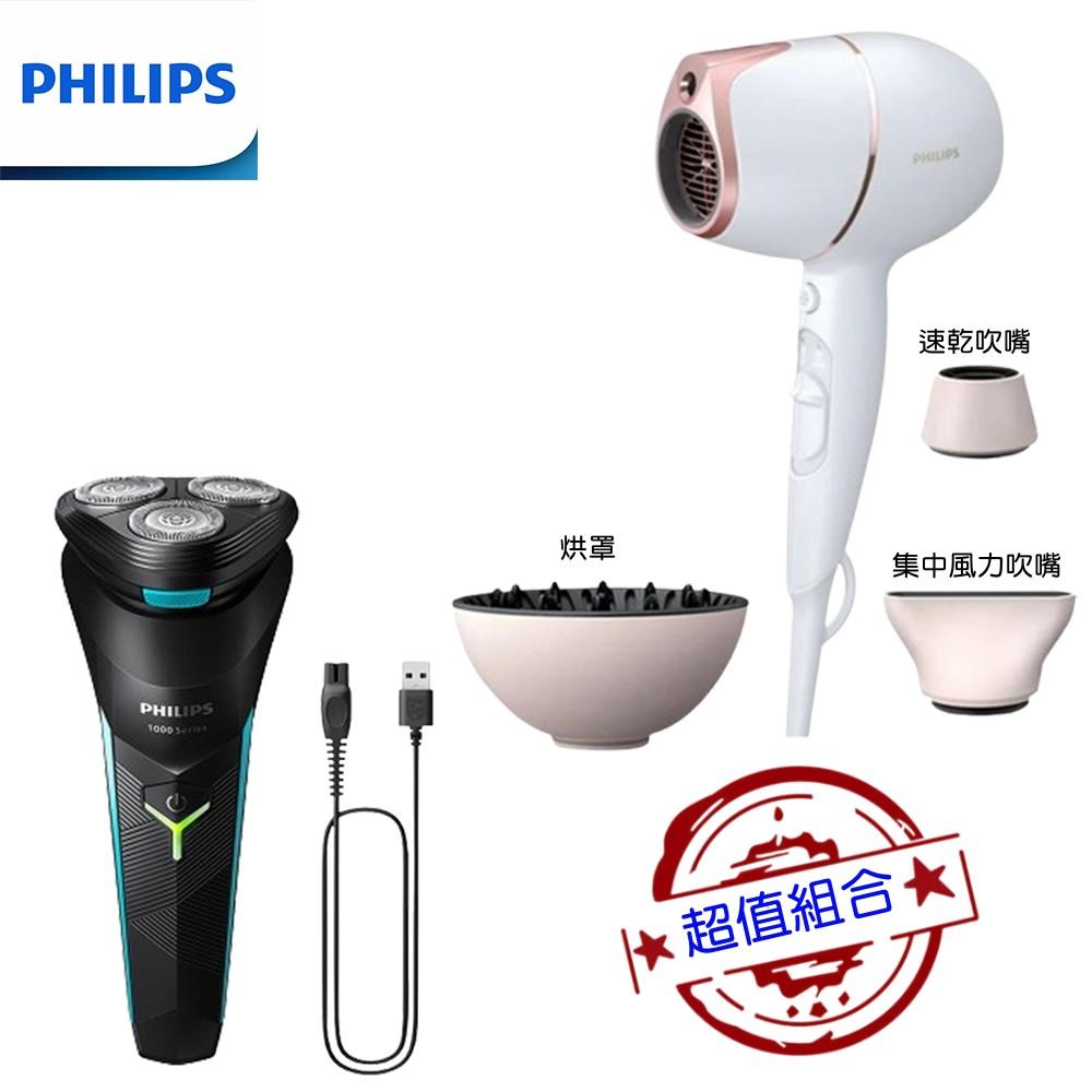 【超值組合 情人送禮首選】PHILIPS BHD628 飛利浦Adele AI頂級智能溫控輕量護髮吹風機 + 電競系列三刀頭電動刮鬍刀 S1115