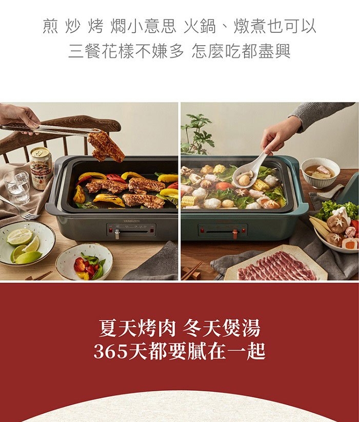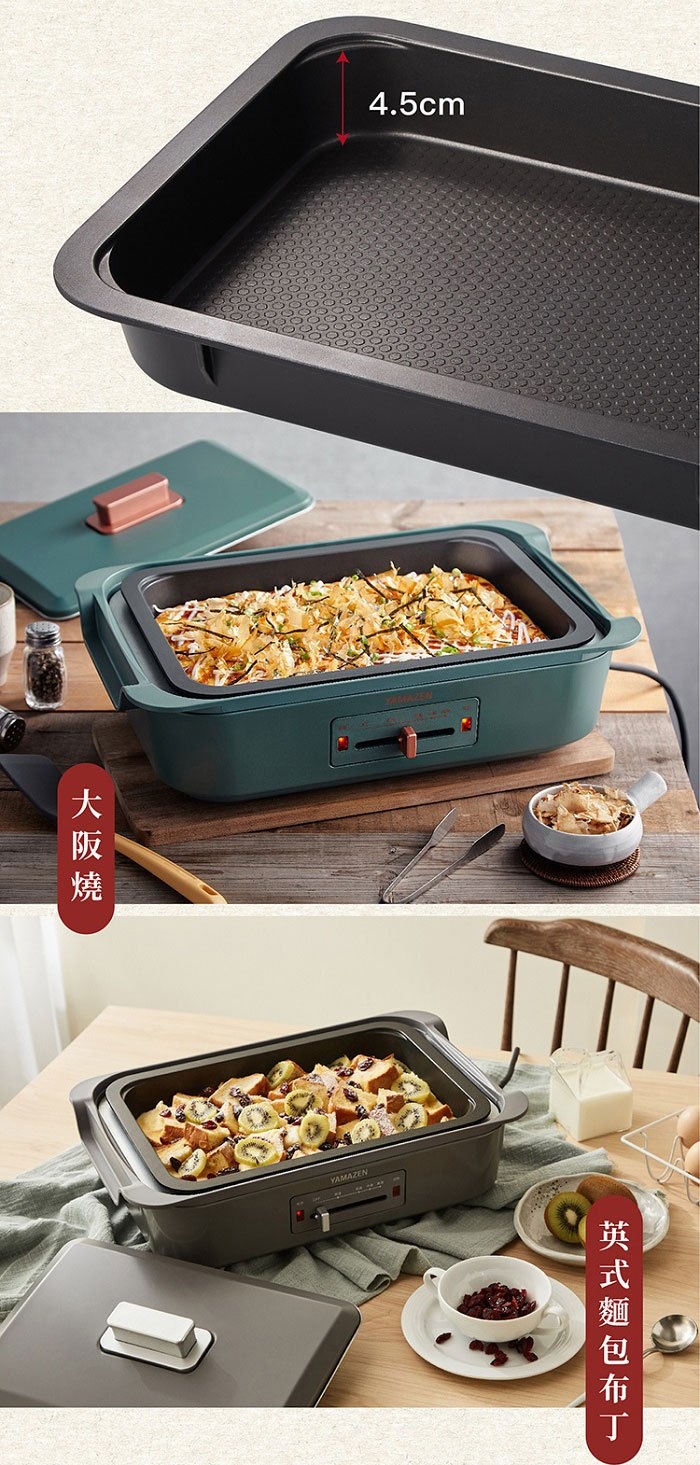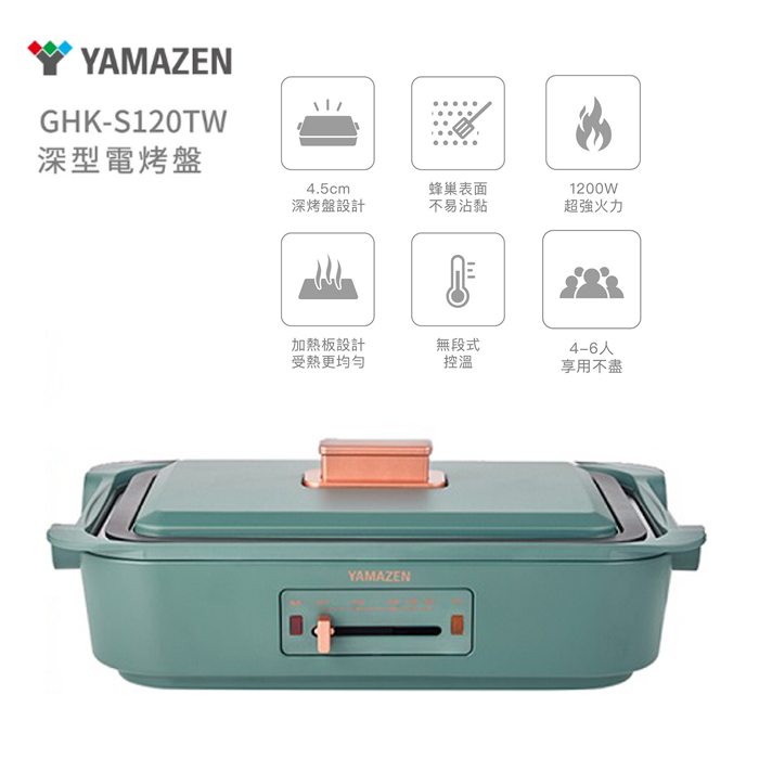 🟢【YAMAZEN 山善】深型電烤盤 GHK-S120TW(夜幕綠)🟢