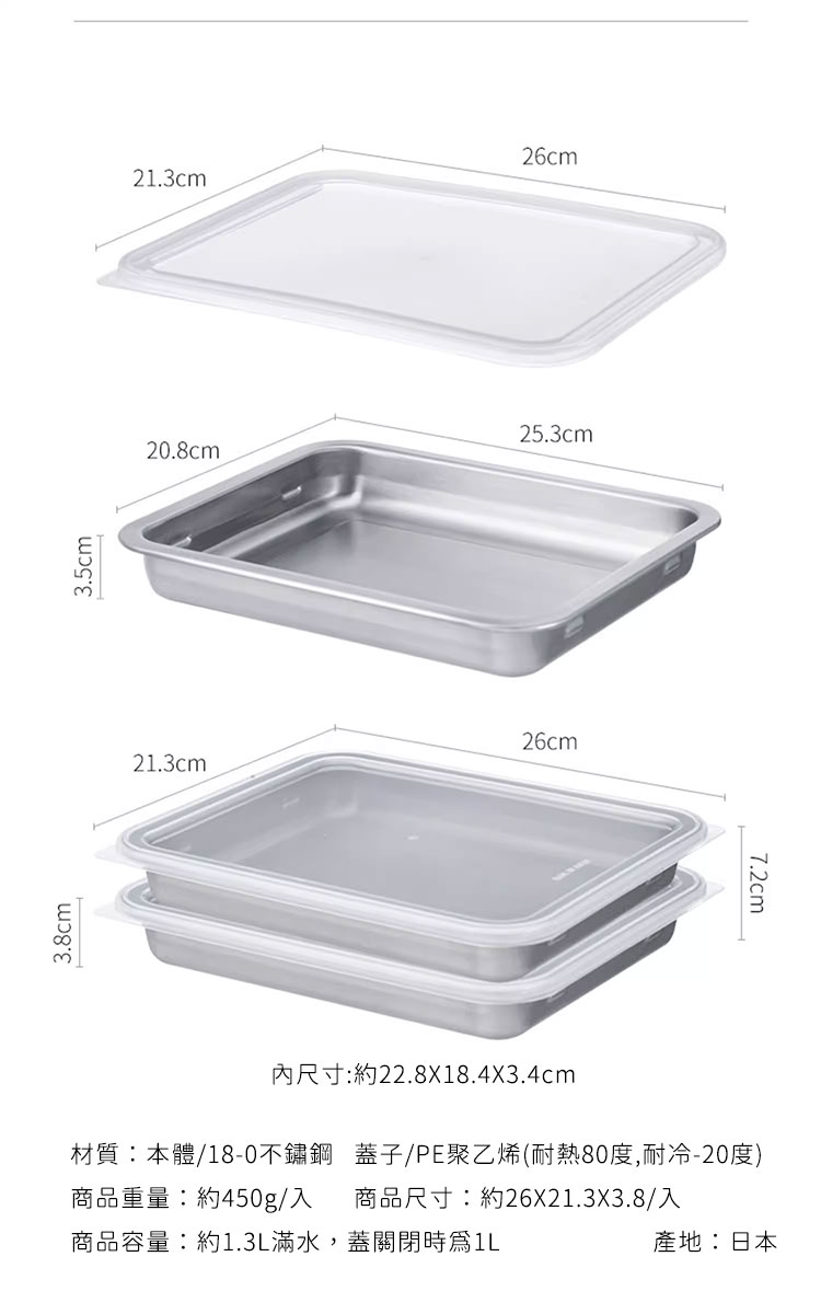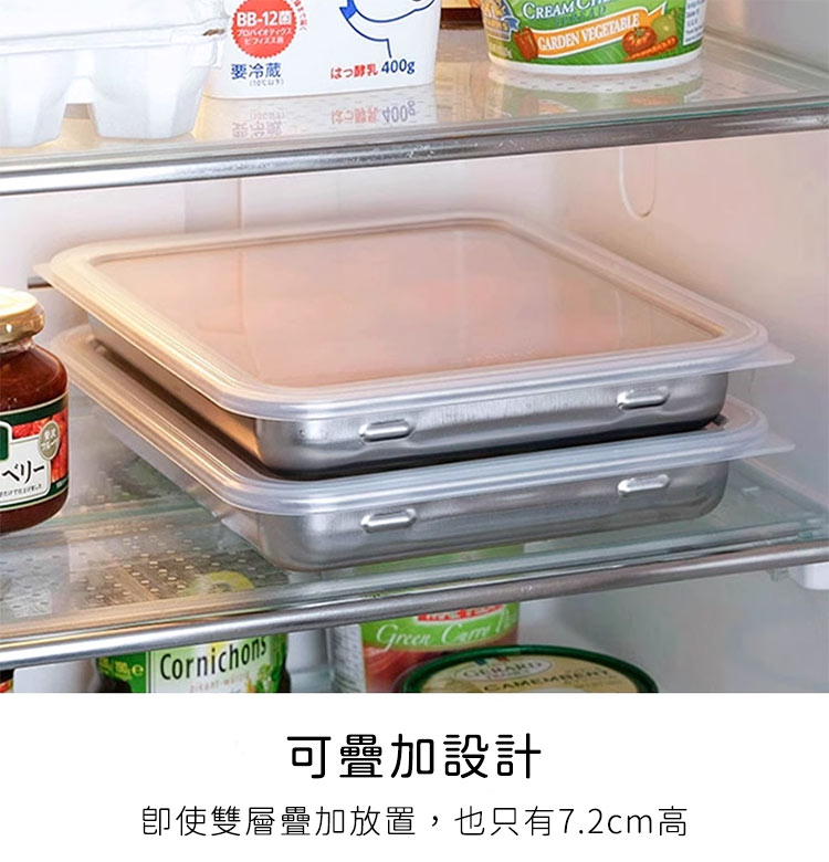 品名:日本製不鏽鋼水餃/麵點保鮮盒二入組(26X21.3X3.8CM)