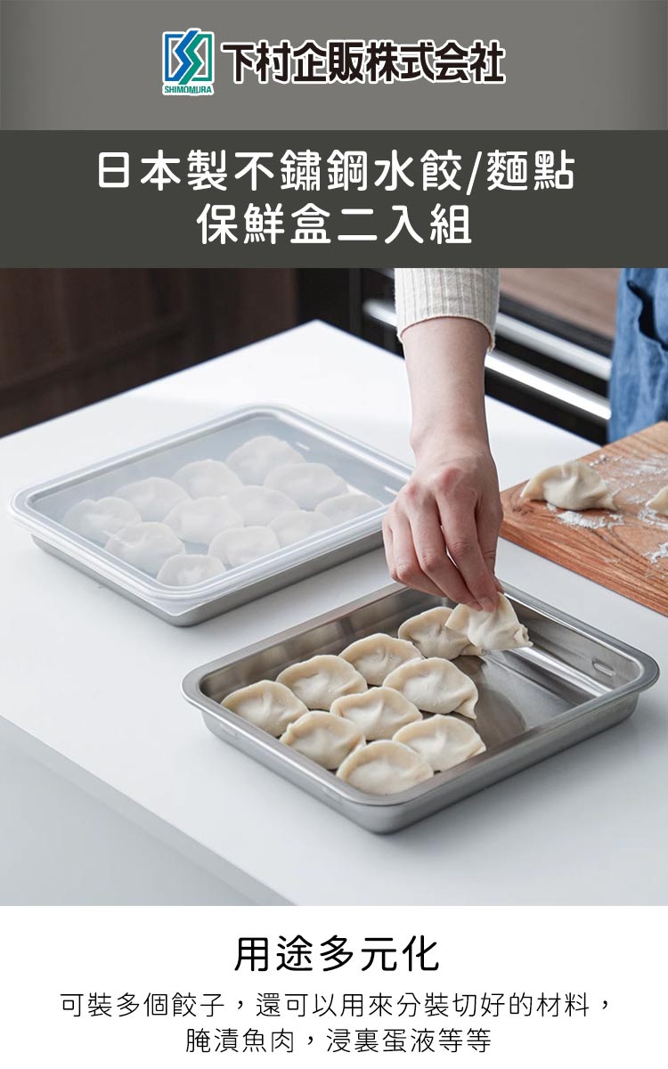 【日本下村工業】日本製不鏽鋼水餃/麵點保鮮盒二入組(26X21.3X3.8CM)