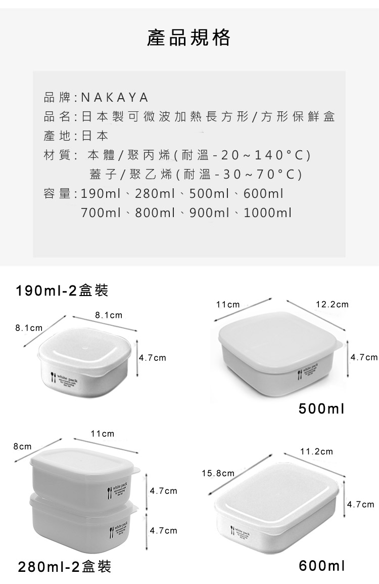 【日本NAKAYA】日本製可微波加熱長方形保鮮盒900ML