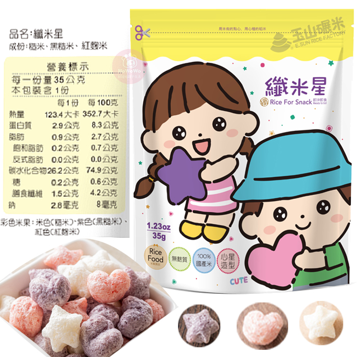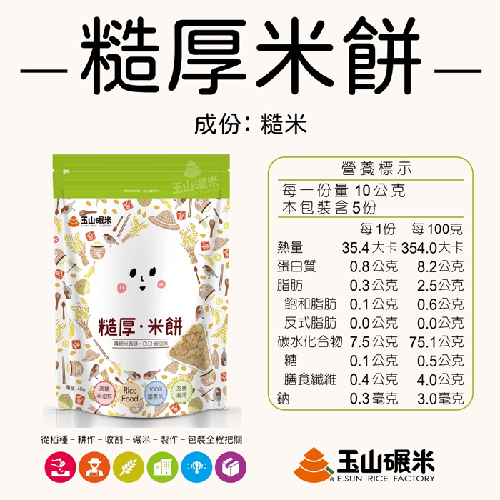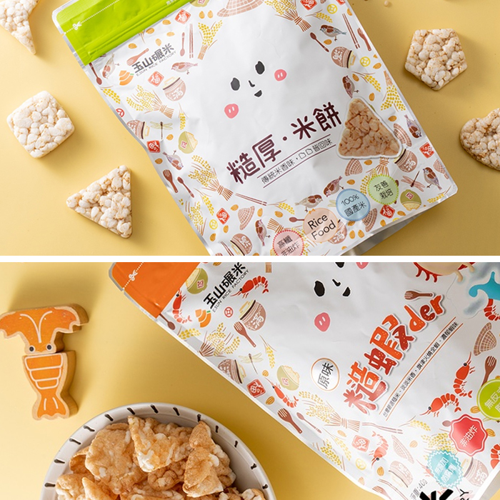 玉山碾米 纖米粒80g、纖米條60g、芝麻米條60g、糙厚米餅40g、糙蝦der米餅40g