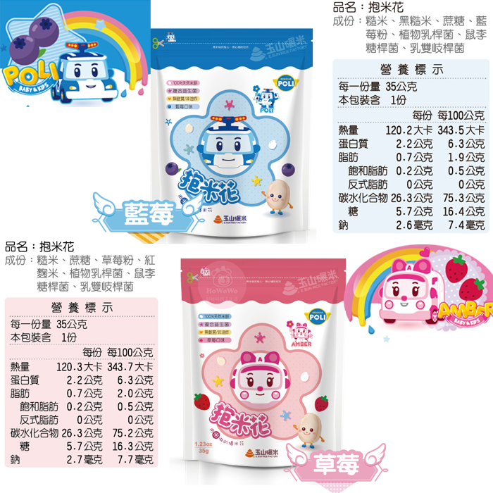 波力藍莓-益生菌米餅35g,成分:糙米、蔗糖、藍莓粉、黑糙米、植物乳桿菌、鼠李糖桿菌、乳雙岐桿菌