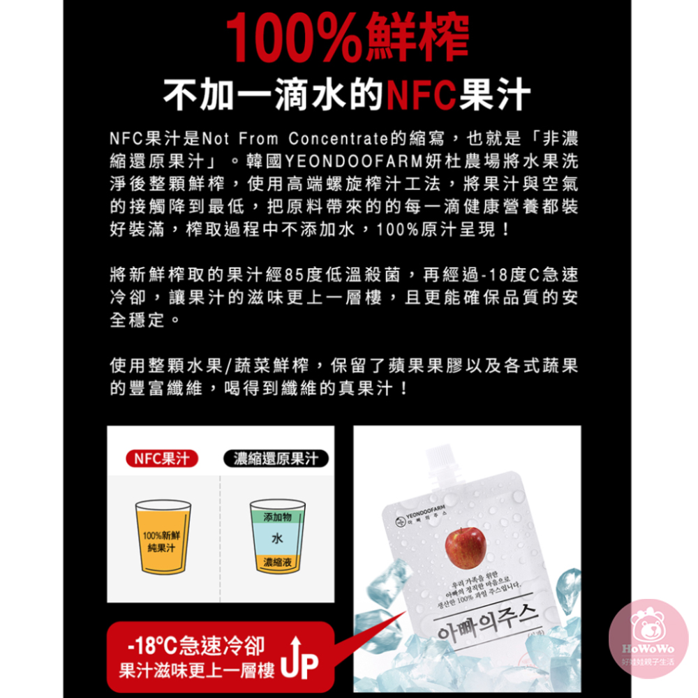 100%NFC果汁,使用螺旋榨汁工法,將果汁與空氣的接觸降到最低