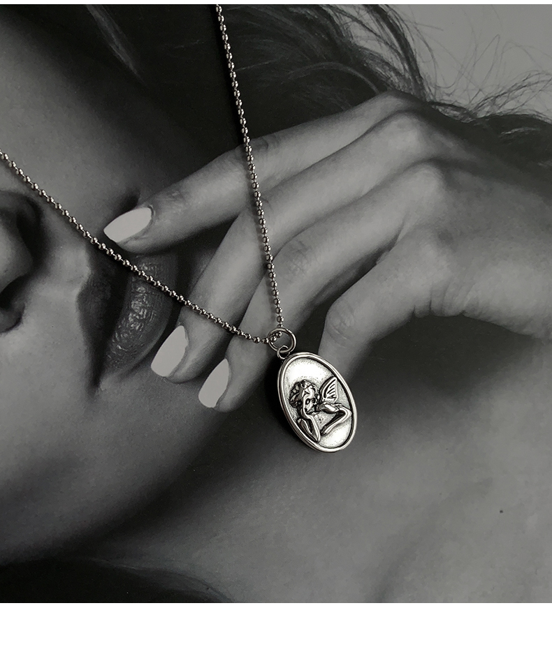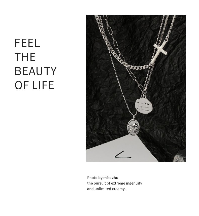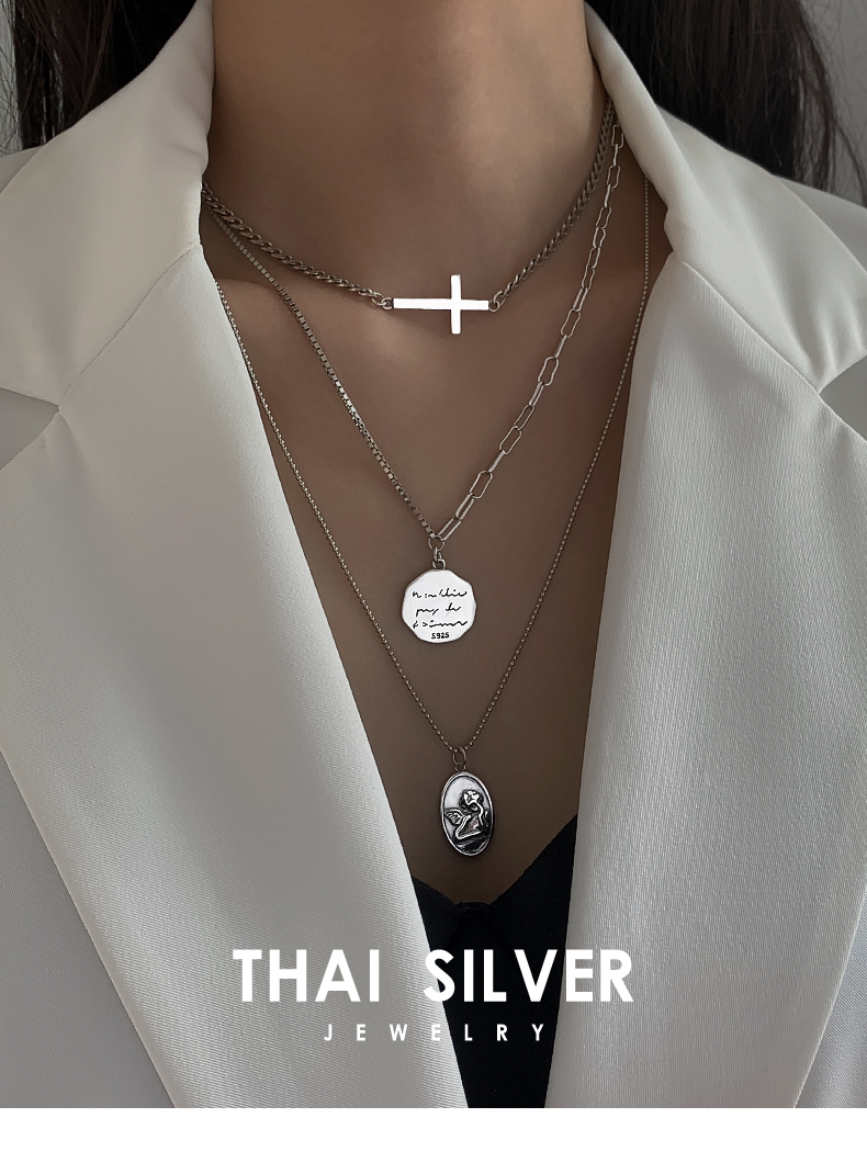 925純銀圓牌人像項鏈女年新款十字架疊戴鎖骨鏈百搭簡約頸鏈 4