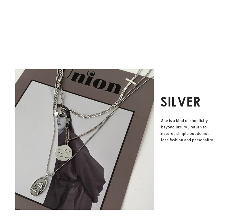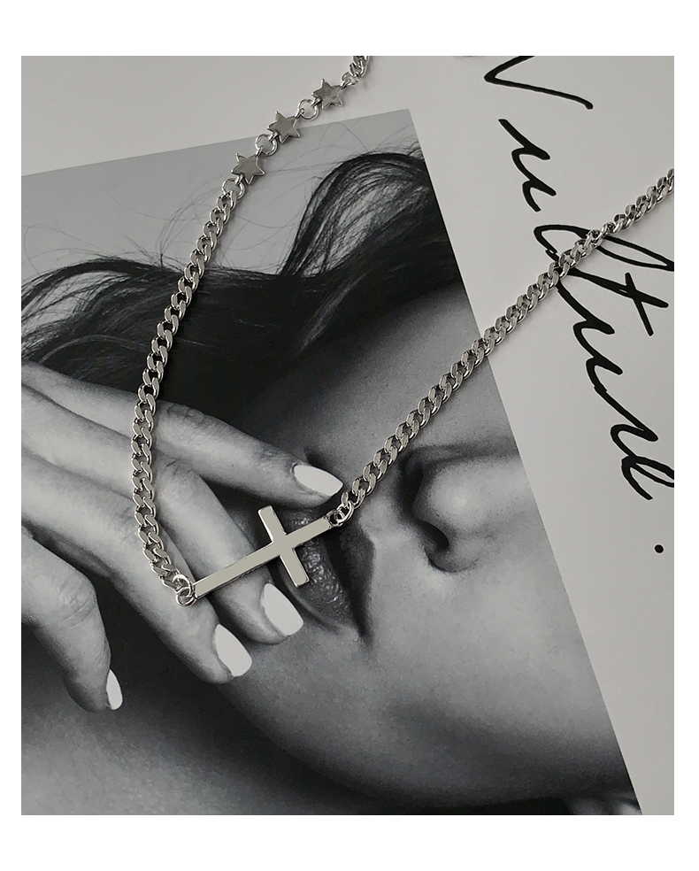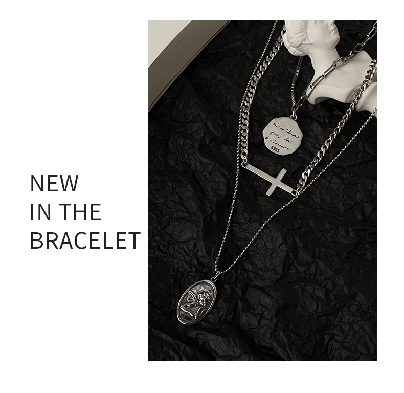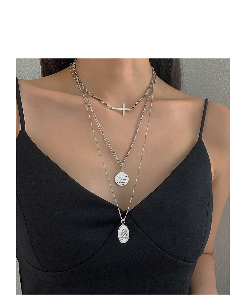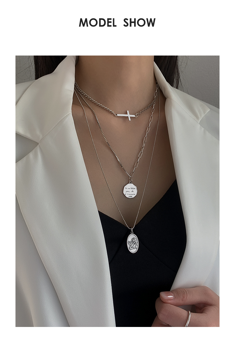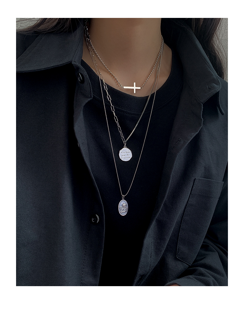 925純銀圓牌人像項鏈女年新款十字架疊戴鎖骨鏈百搭簡約頸鏈 3
