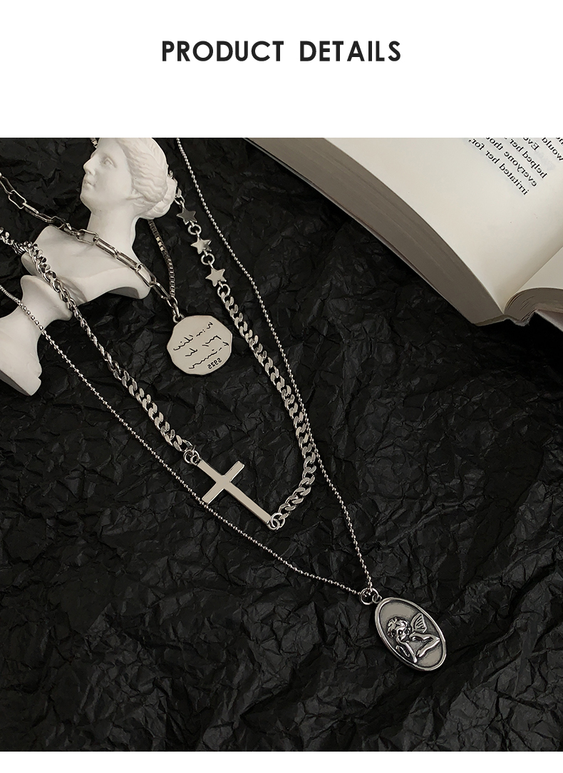 925純銀圓牌人像項鏈女年新款十字架疊戴鎖骨鏈百搭簡約頸鏈 2