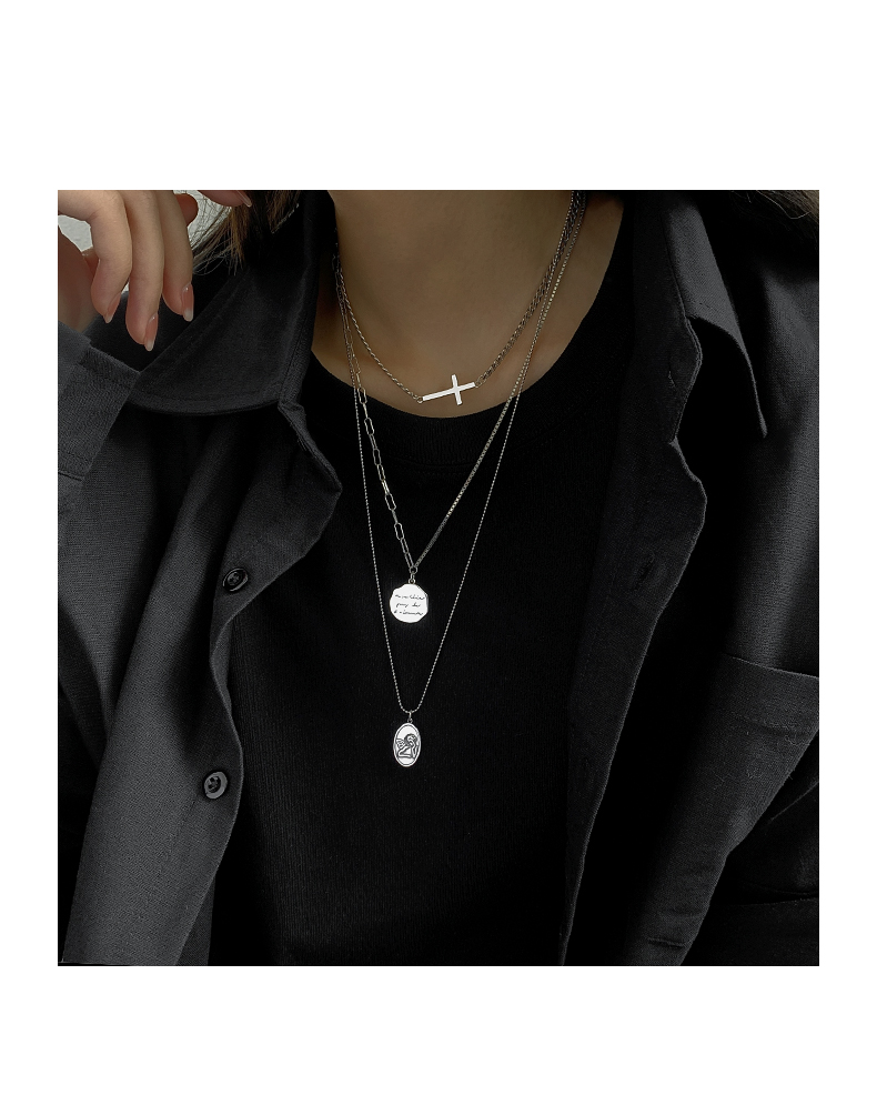925純銀圓牌人像項鏈女年新款十字架疊戴鎖骨鏈百搭簡約頸鏈 1