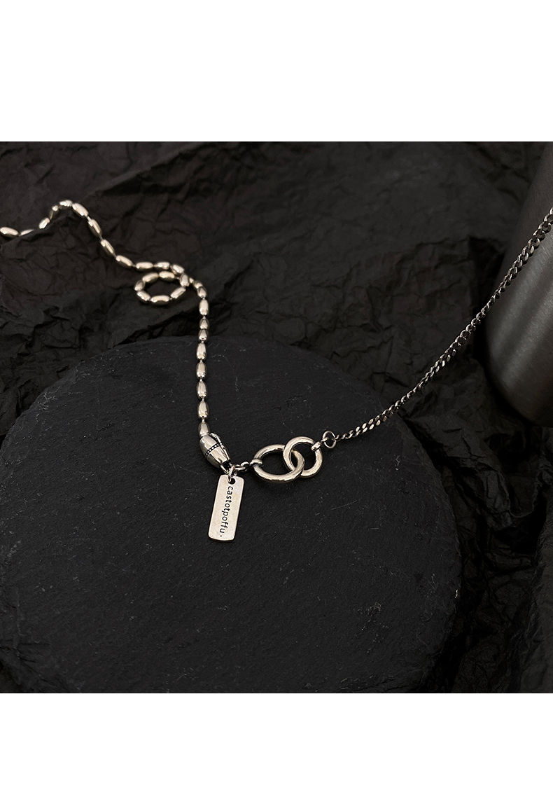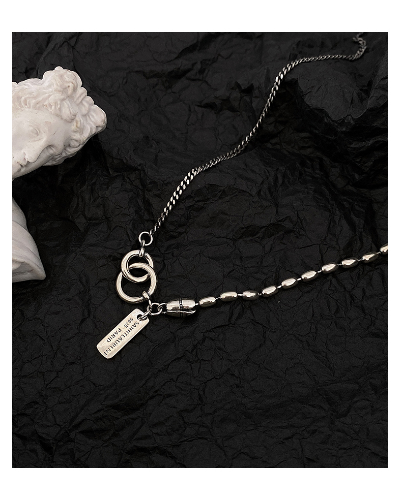 925純銀雙圓環項鏈女年新款方牌字母鎖骨鏈復古做舊嘻哈頸鏈 1