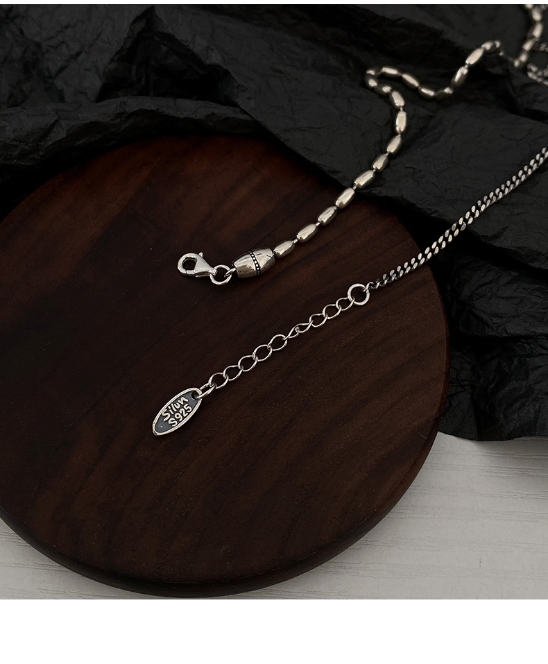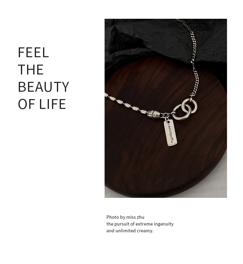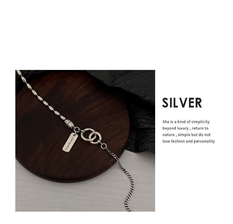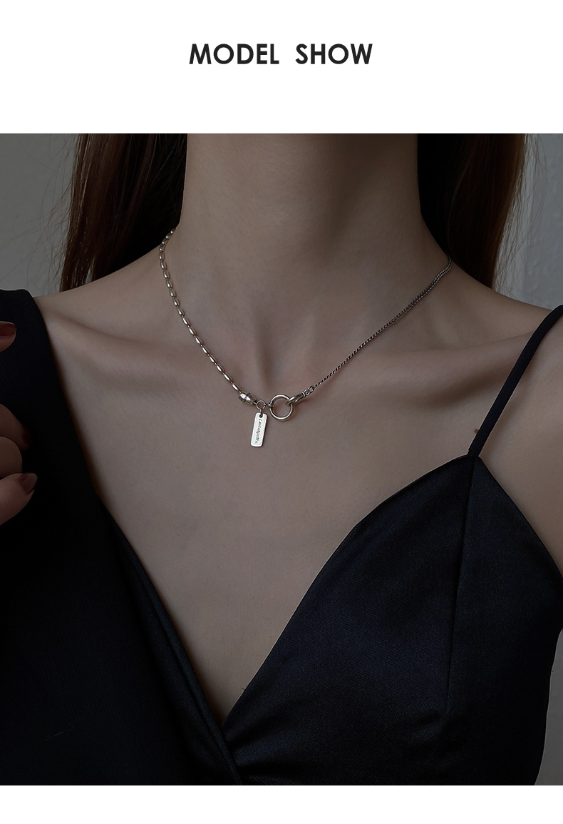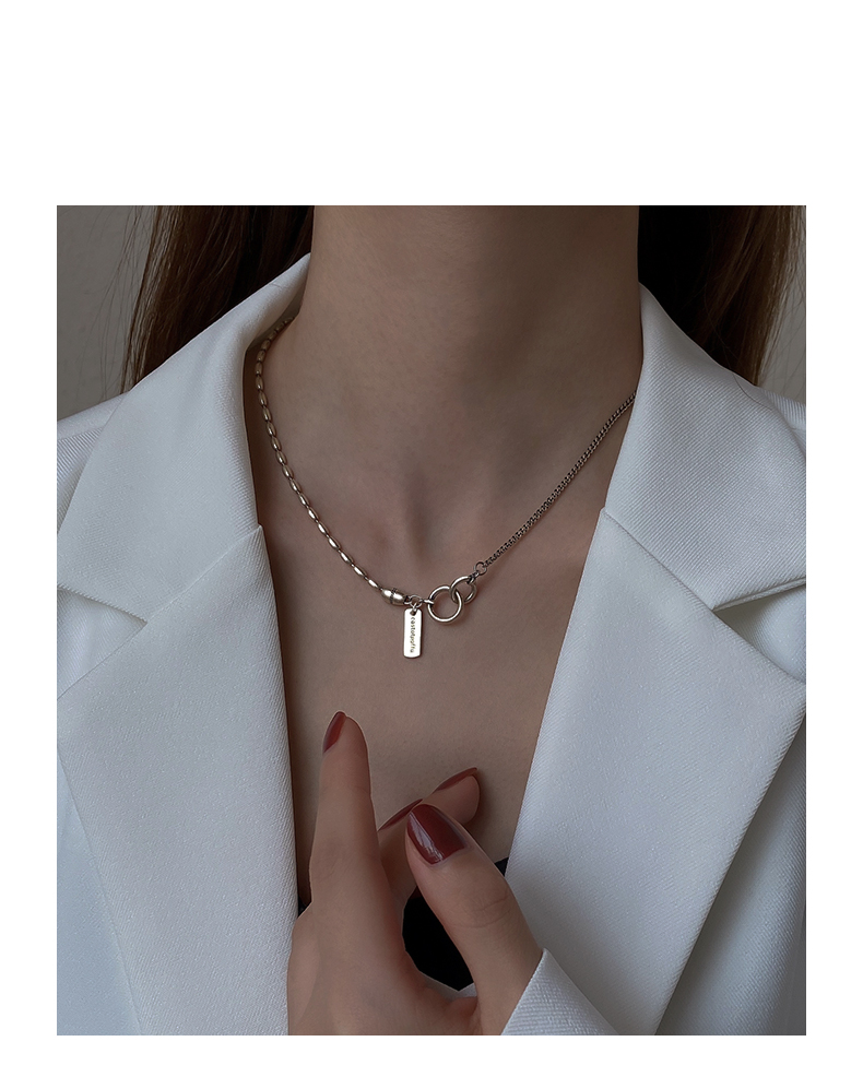 925純銀雙圓環項鏈女年新款方牌字母鎖骨鏈復古做舊嘻哈頸鏈 4