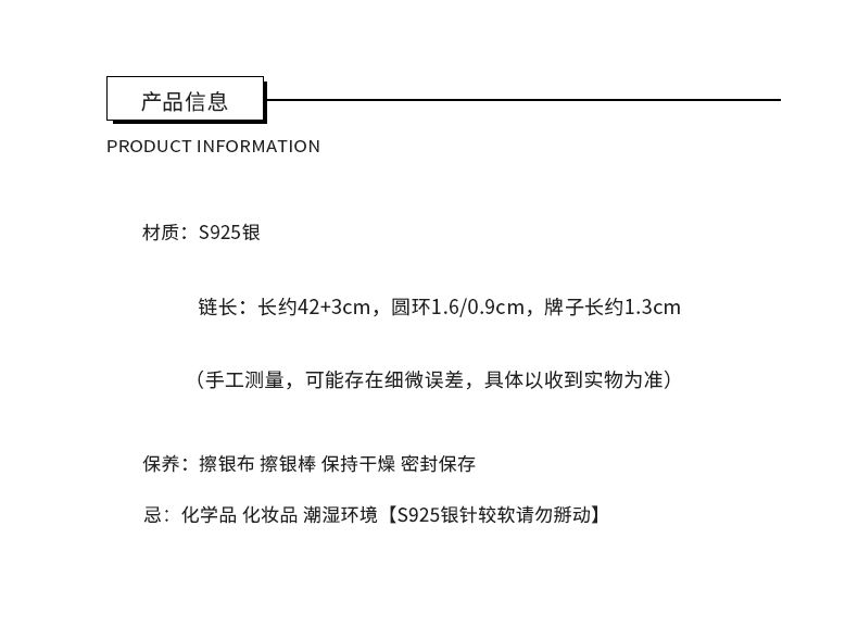 6. 925純銀雙圓環項鏈女年新款方牌字母鎖骨鏈復古做舊嘻哈頸鏈
