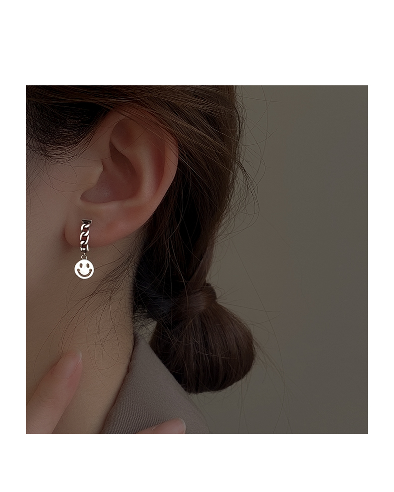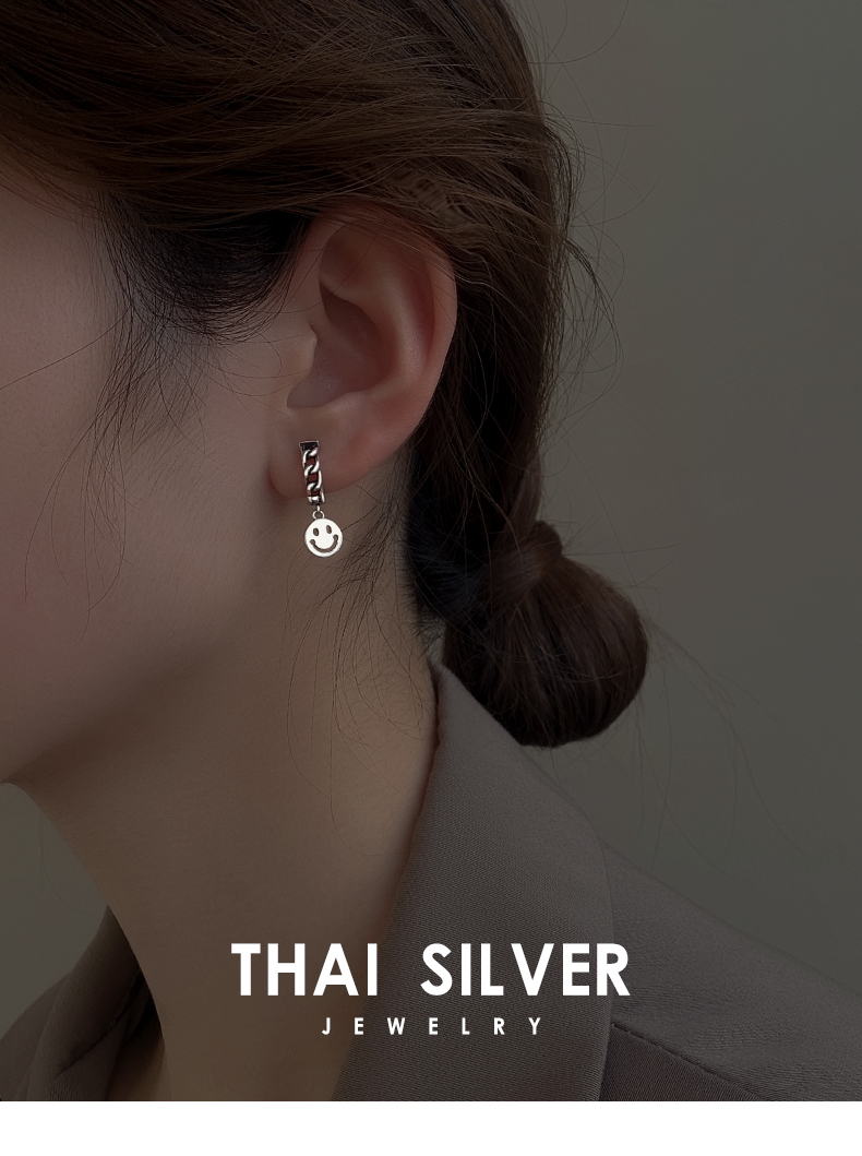 925純銀笑臉耳環女年新款潮復古泰銀耳墜冷淡風耳圈鏈條耳飾 1
