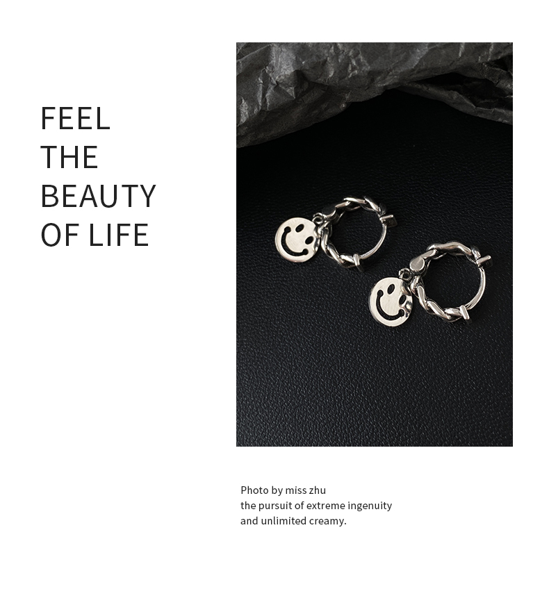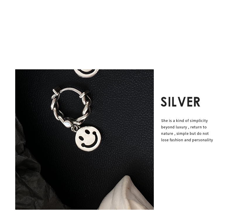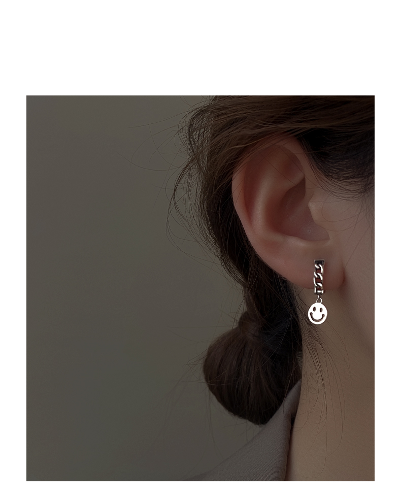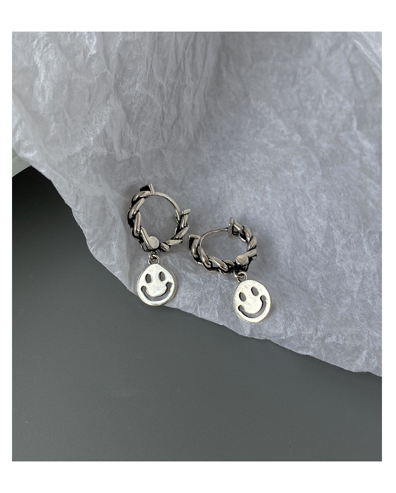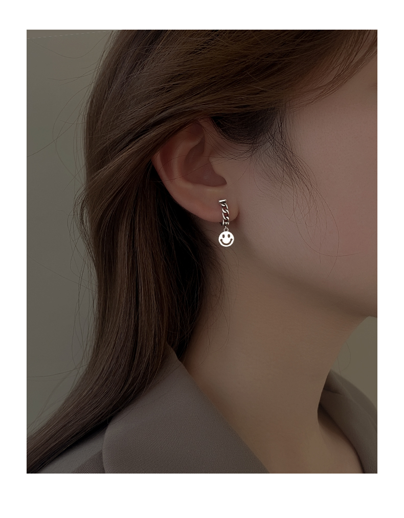 925純銀笑臉耳環女年新款潮復古泰銀耳墜冷淡風耳圈鏈條耳飾 4