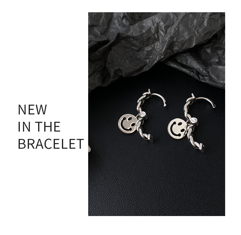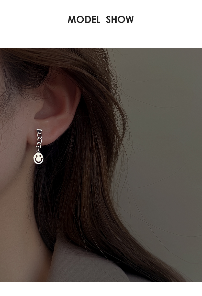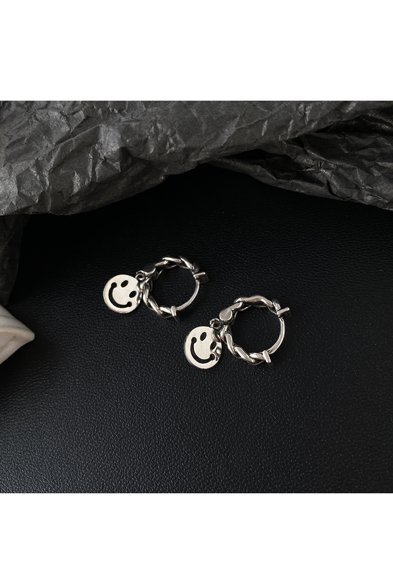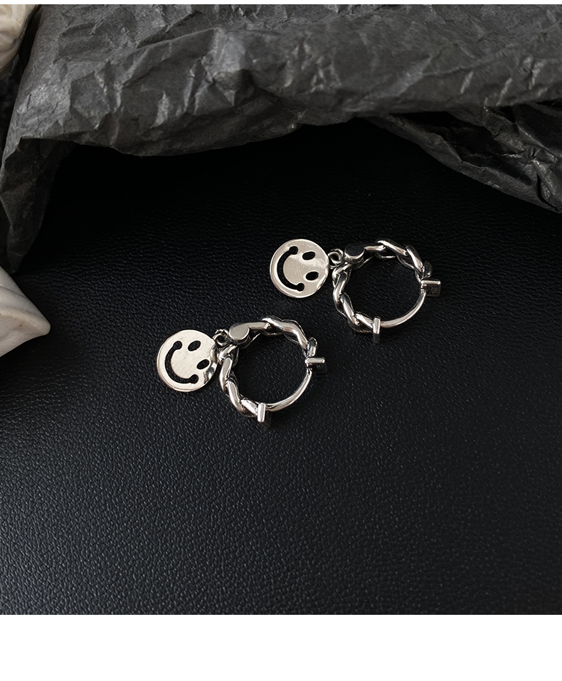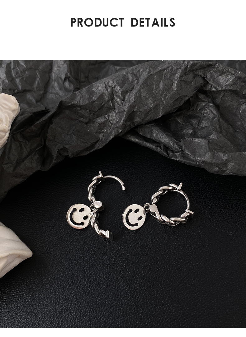 6. 925純銀笑臉耳環女年新款潮復古泰銀耳墜冷淡風耳圈鏈條耳飾