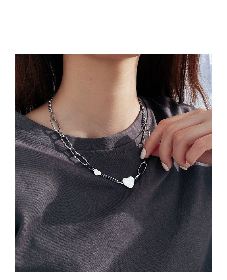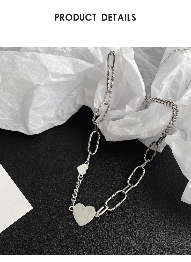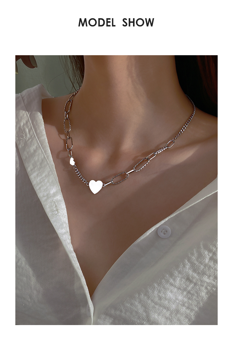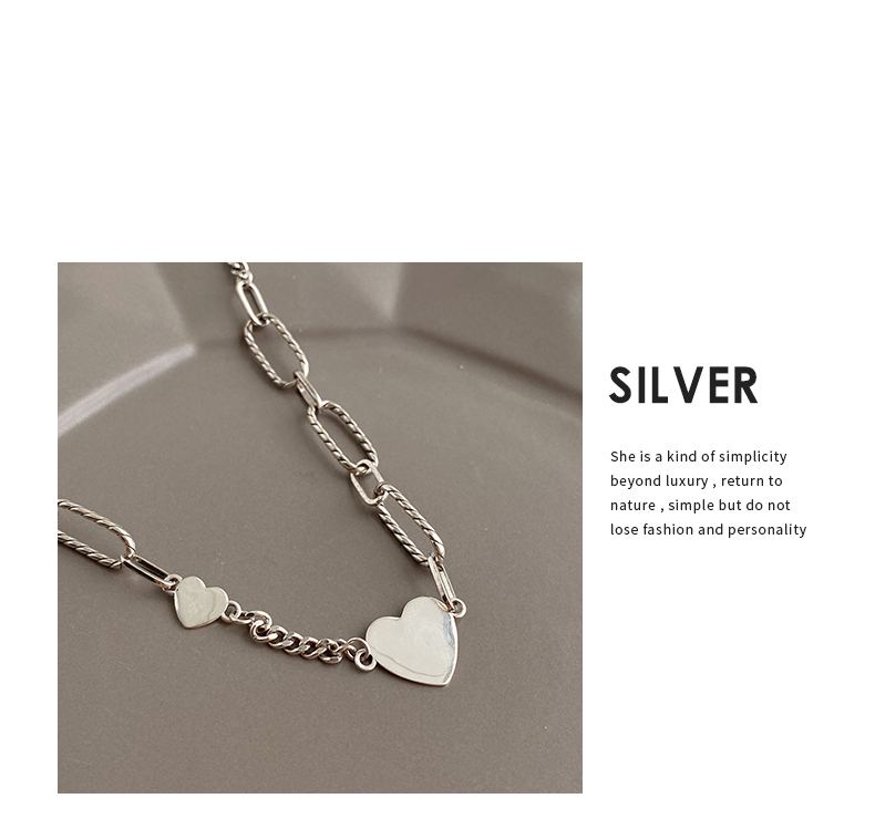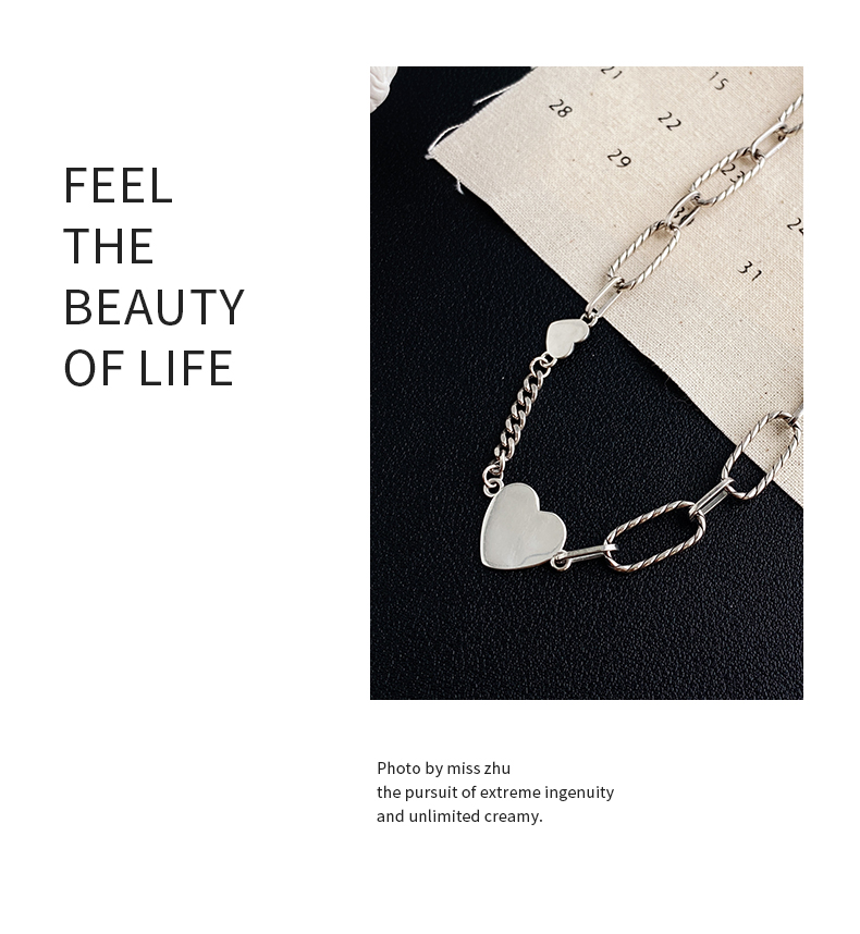 925純銀愛心項鏈女年新款簡約小眾鎖骨鏈復古泰銀粗鏈條頸鏈 4