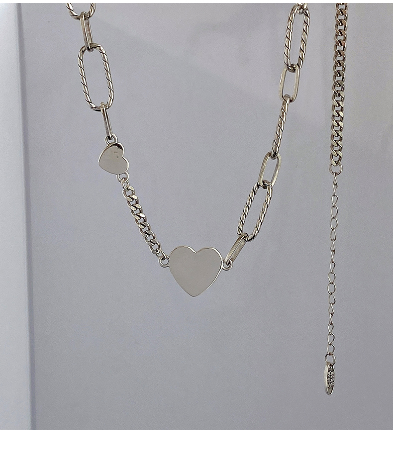 925純銀愛心項鏈女年新款簡約小眾鎖骨鏈復古泰銀粗鏈條頸鏈 3