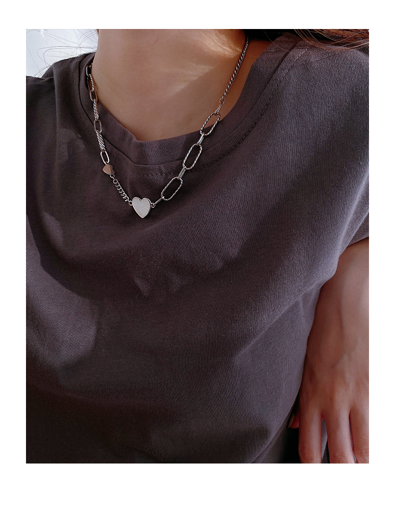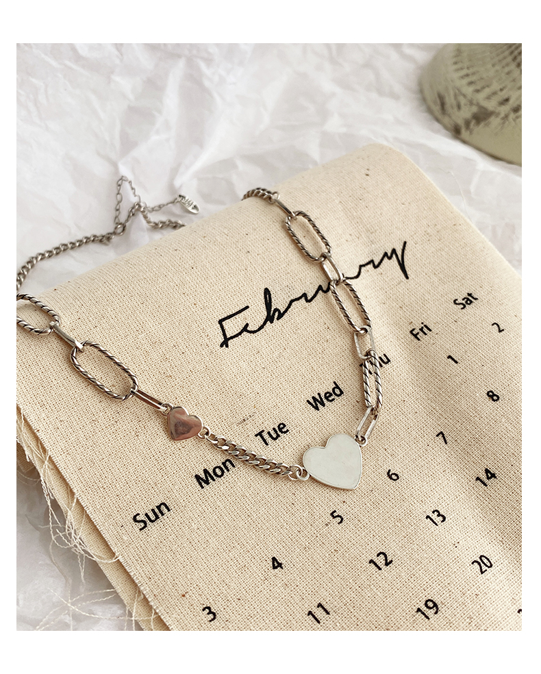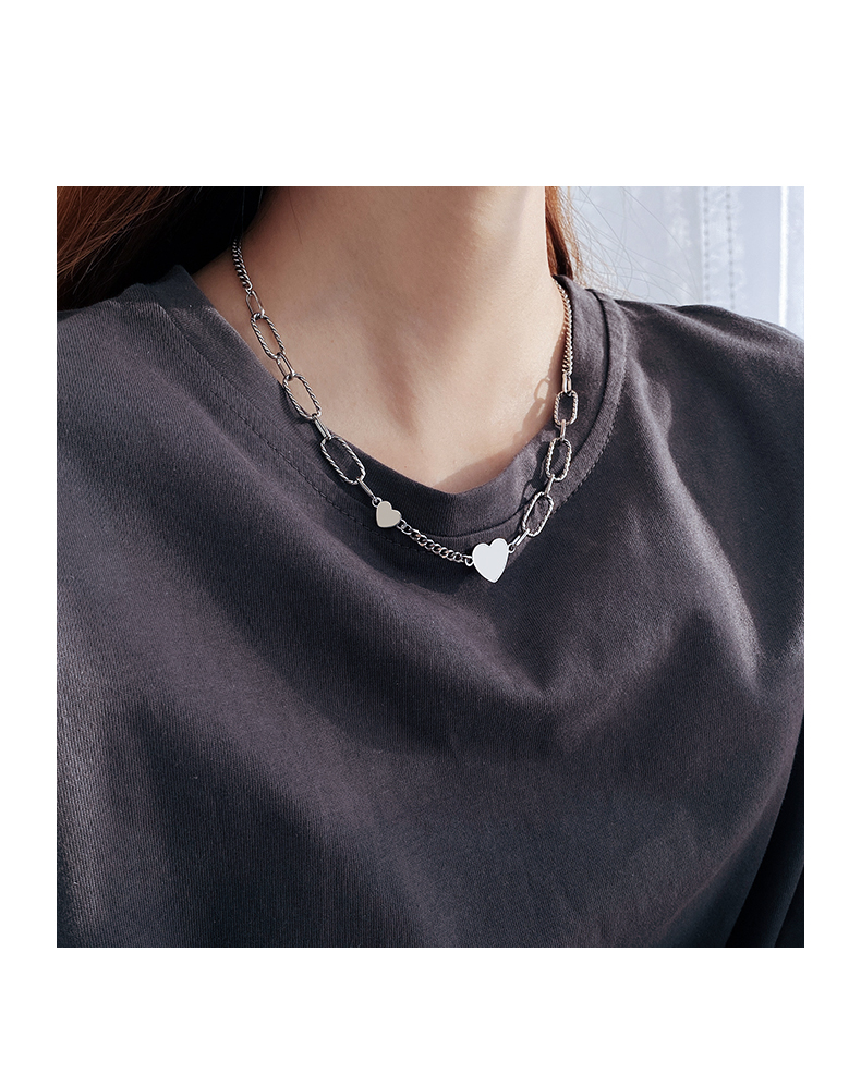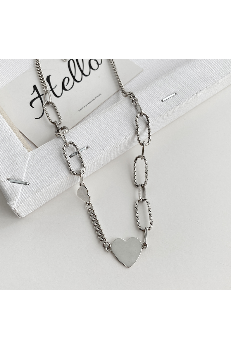 6. 925純銀愛心項鏈女年新款簡約小眾鎖骨鏈復古泰銀粗鏈條頸鏈