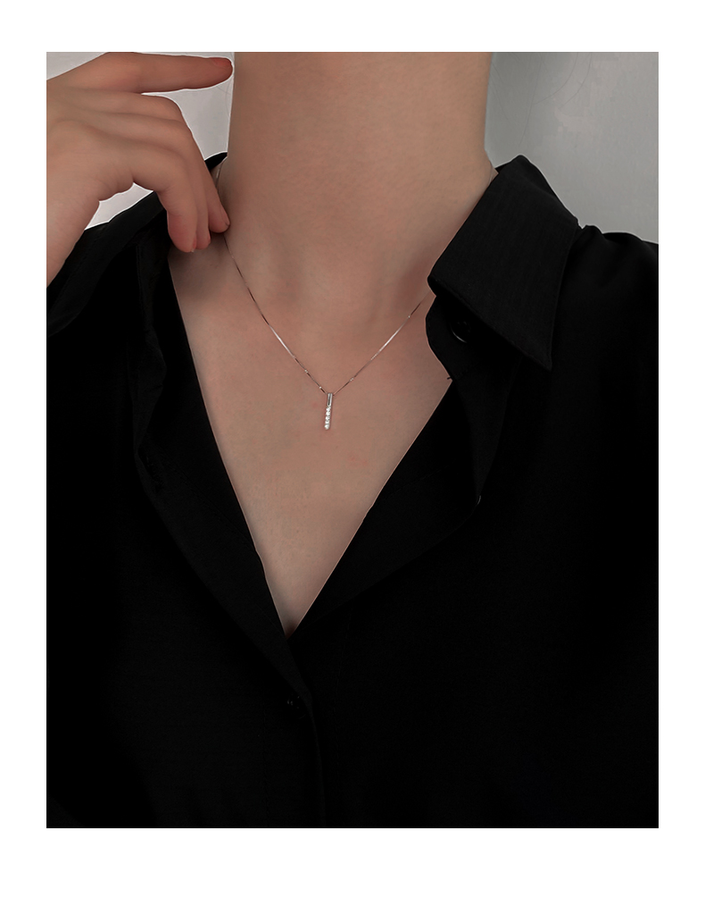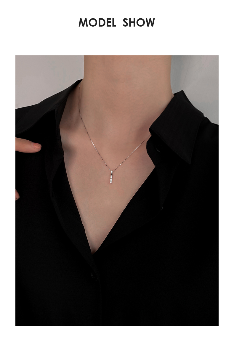 925純銀幾何長條項鏈女潮網紅ins嘻哈鎖骨鏈個性氣質輕奢小眾頸鏈 3