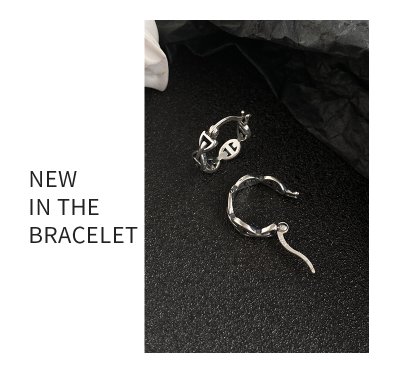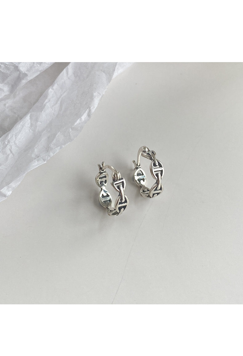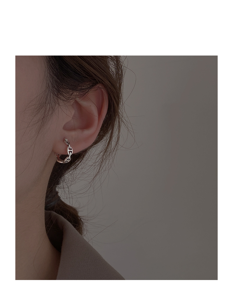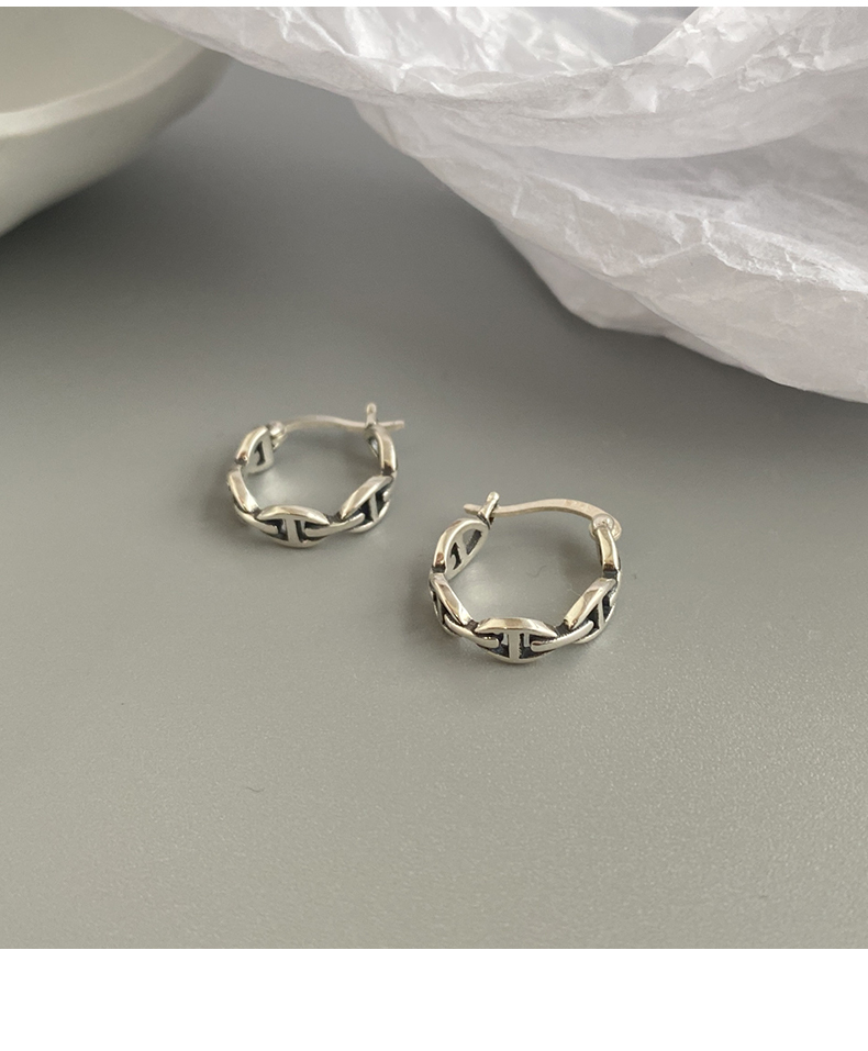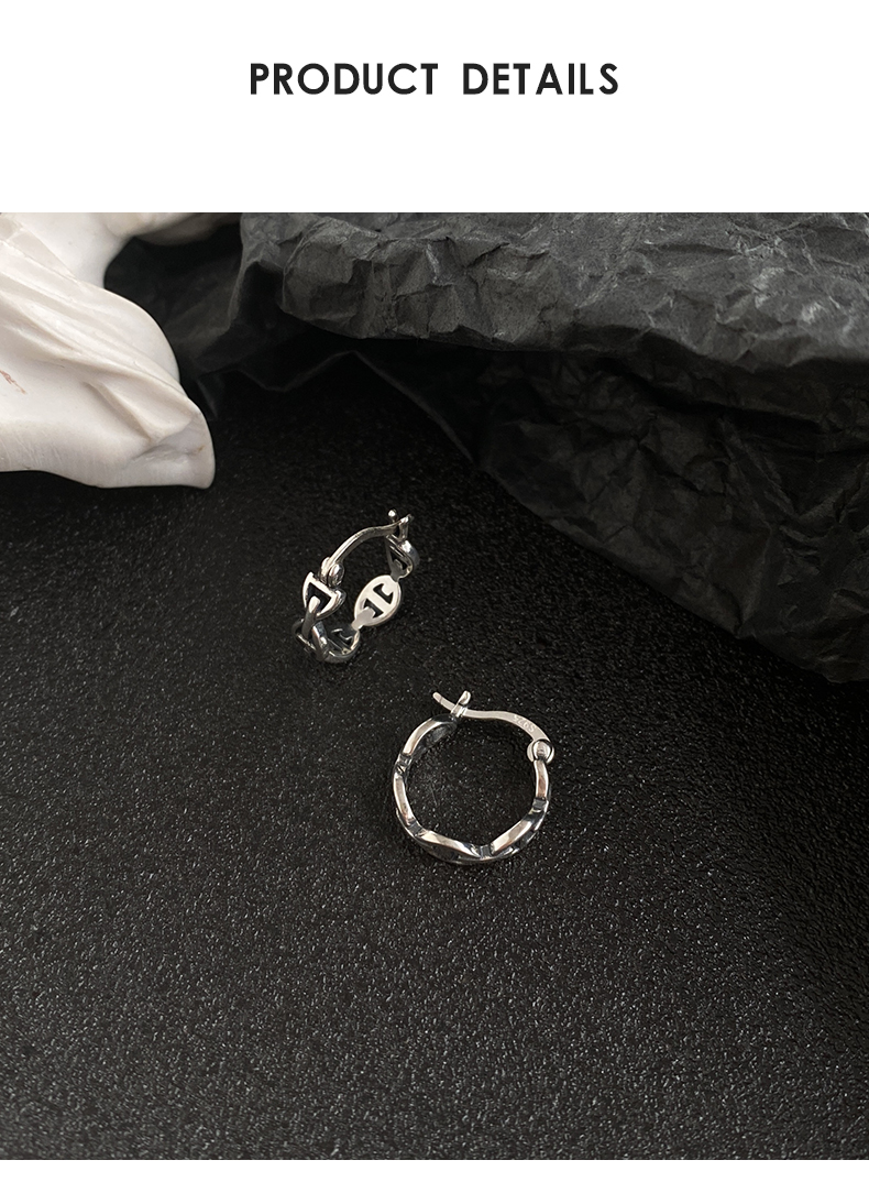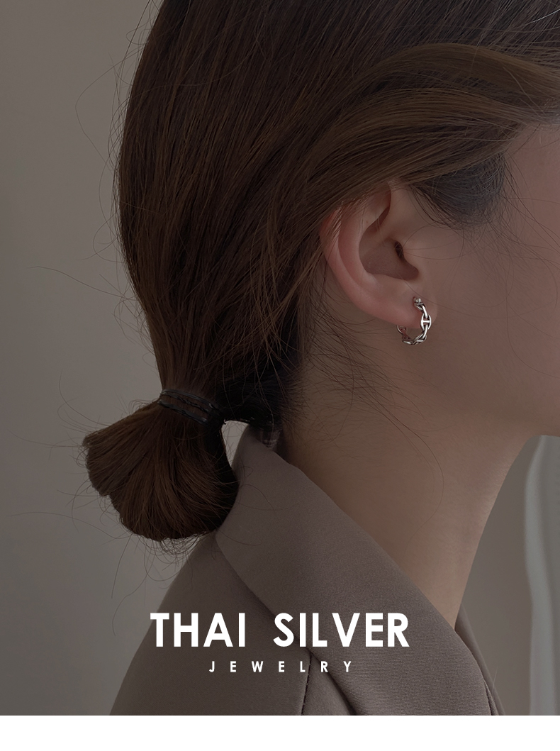 6. 925純銀鏈條耳環女年新款潮復古泰銀耳圈酷帥豬鼻子甜酷耳飾