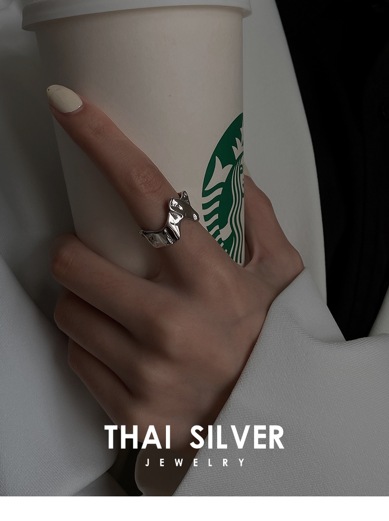 6. 925純銀異性寬面戒指女復古冷淡風食指戒男潮個性朋克嘻哈指環