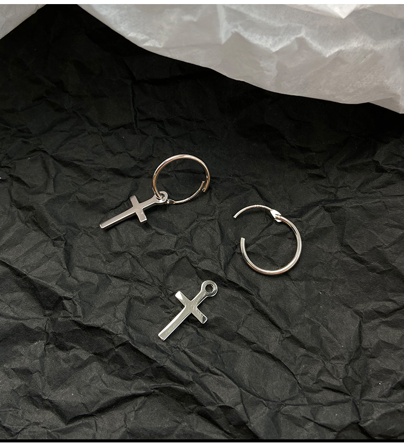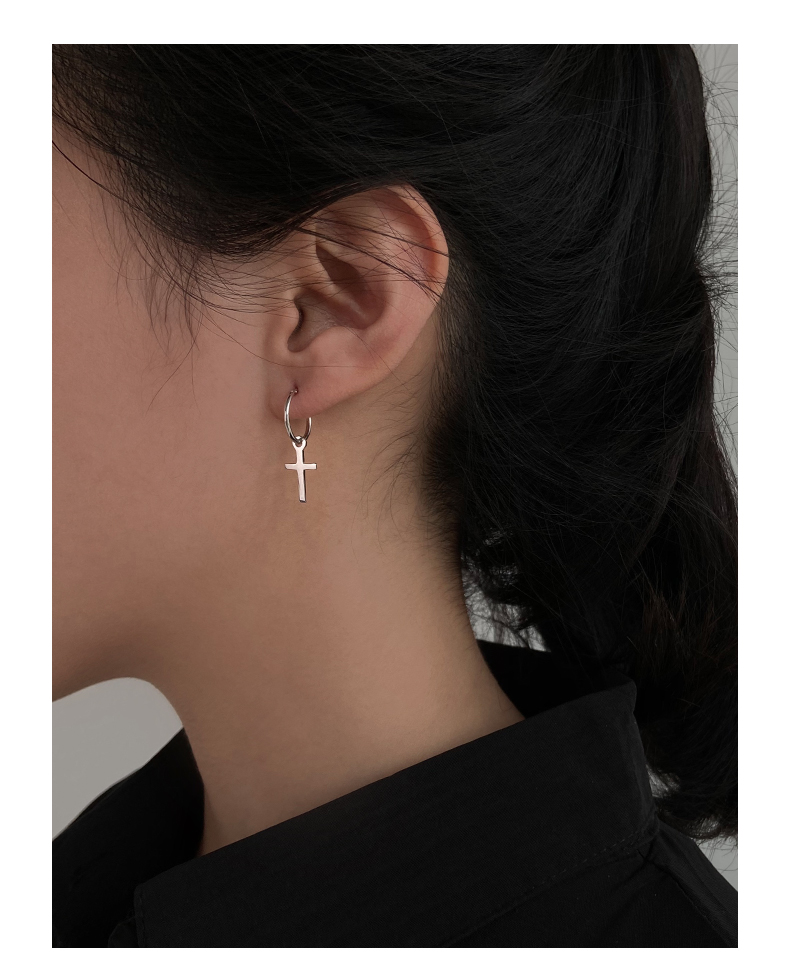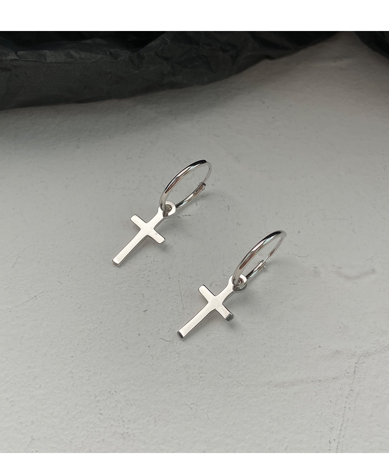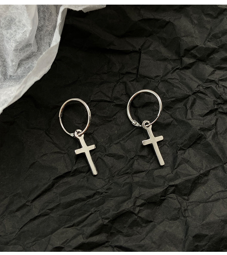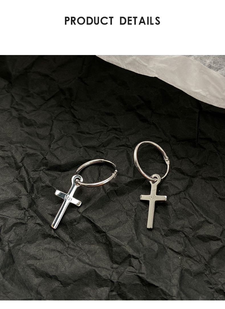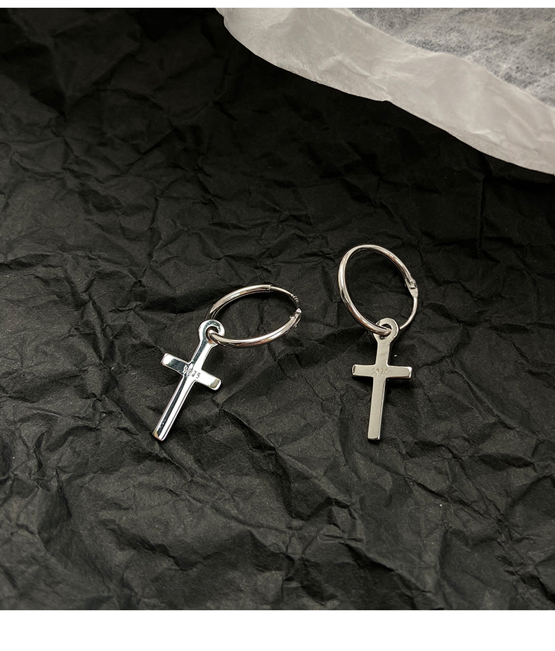 925純銀耳環女年耳圈十字架耳墜新款潮耳釘酷帥耳扣復古耳飾 4