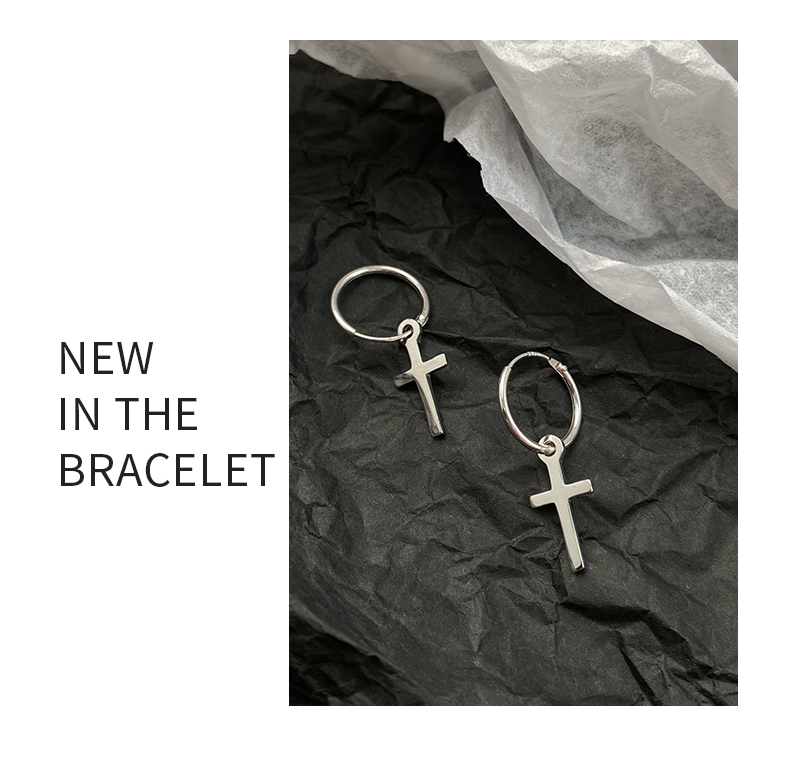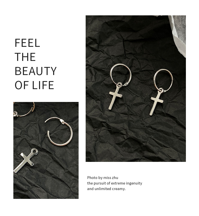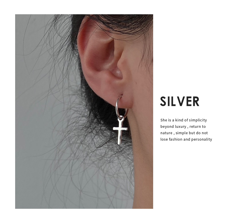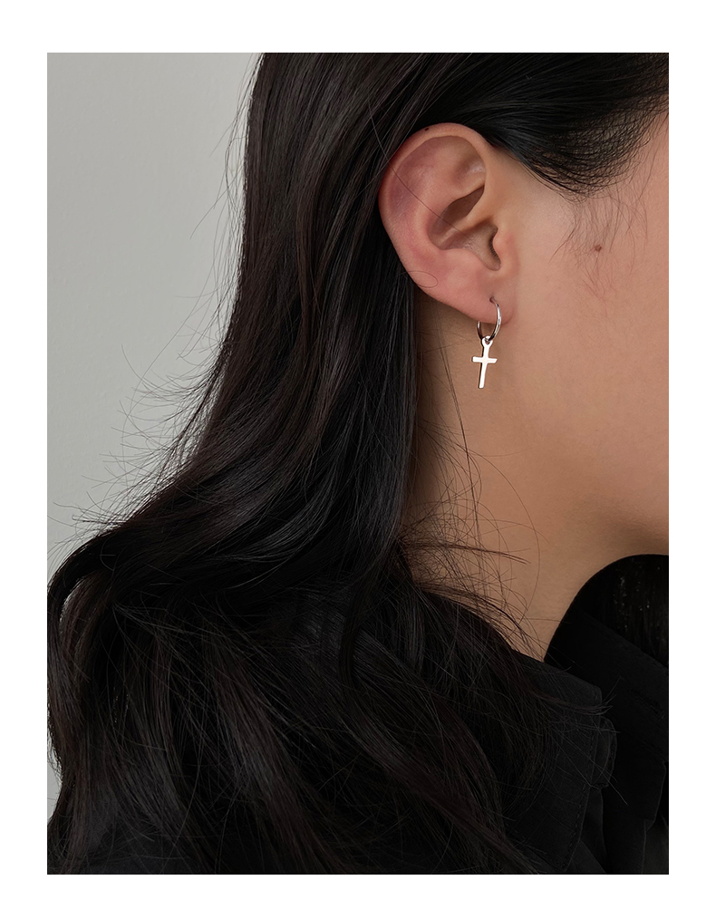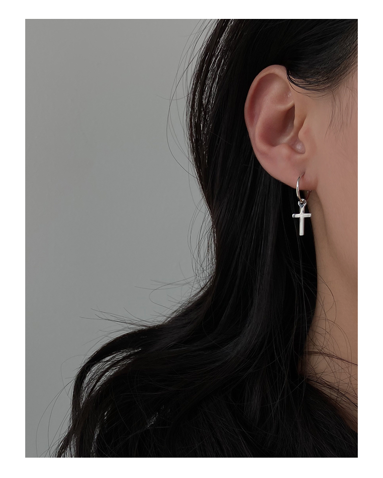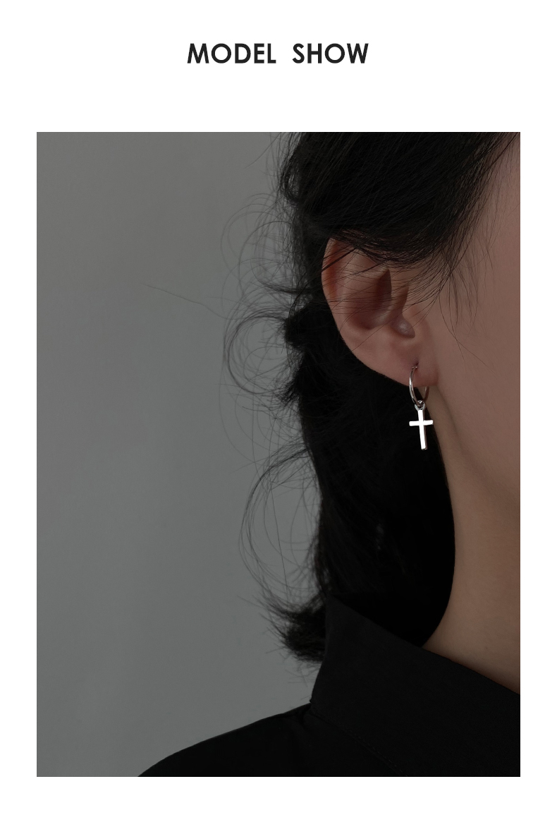 925純銀耳環女年耳圈十字架耳墜新款潮耳釘酷帥耳扣復古耳飾 4