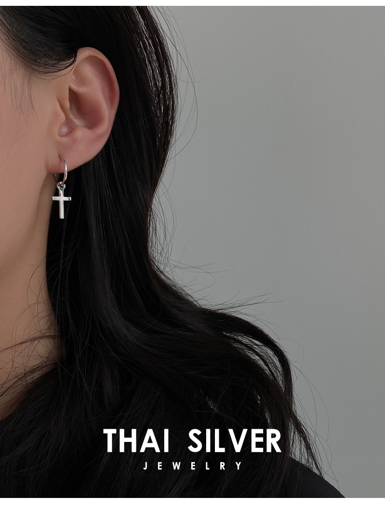 6. 925純銀耳環女年耳圈十字架耳墜新款潮耳釘酷帥耳扣復古耳飾