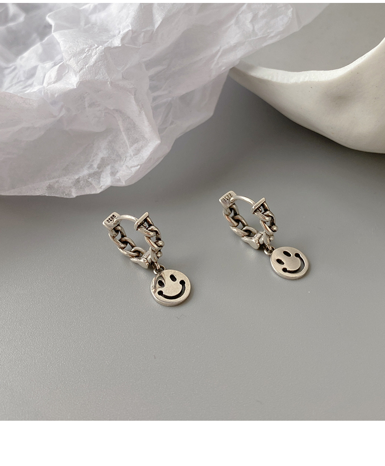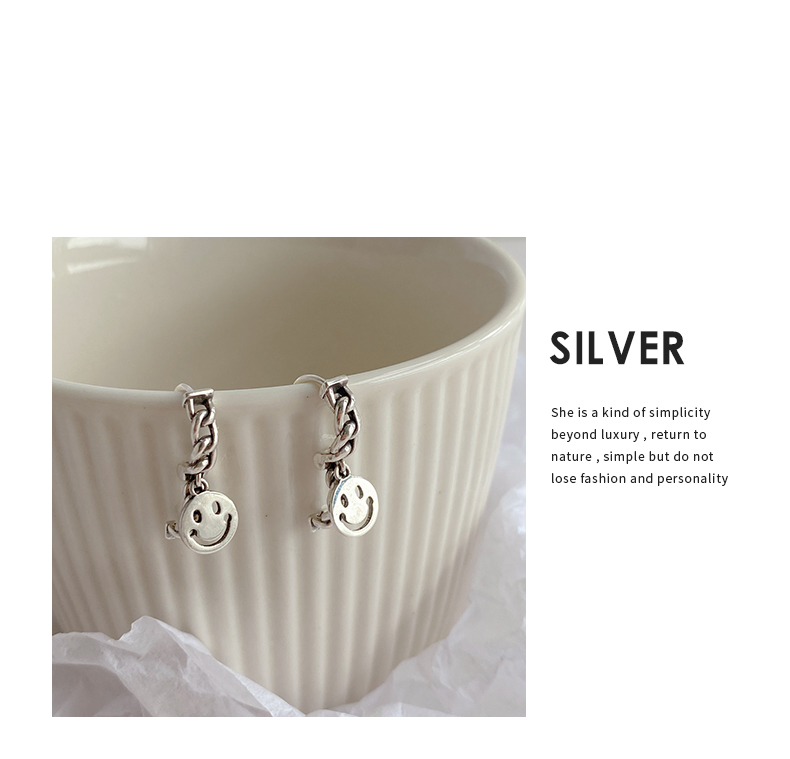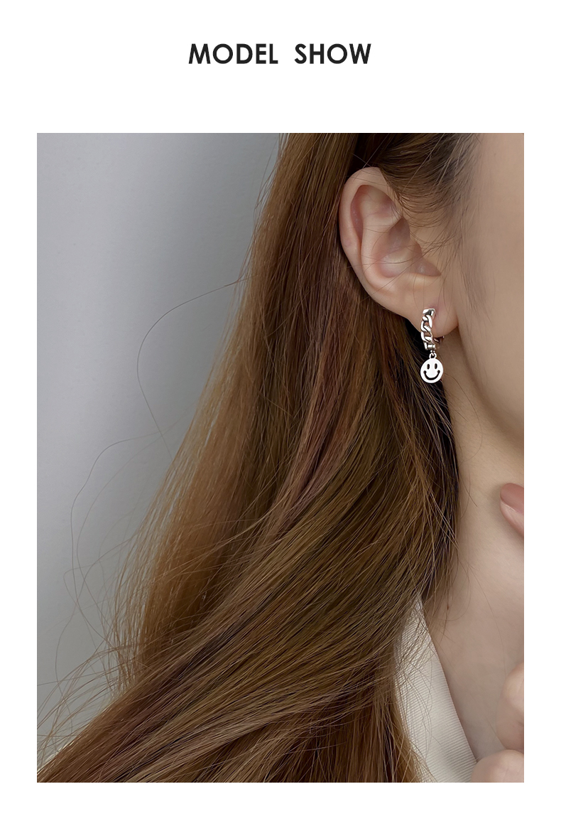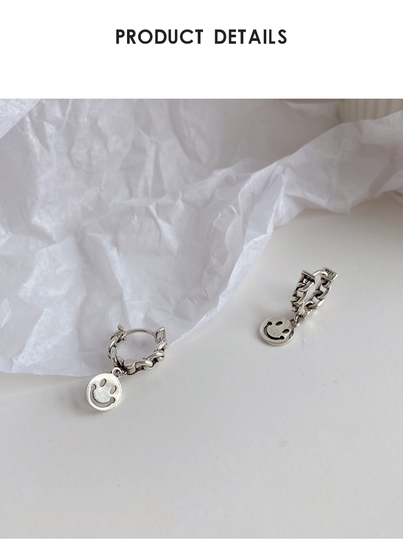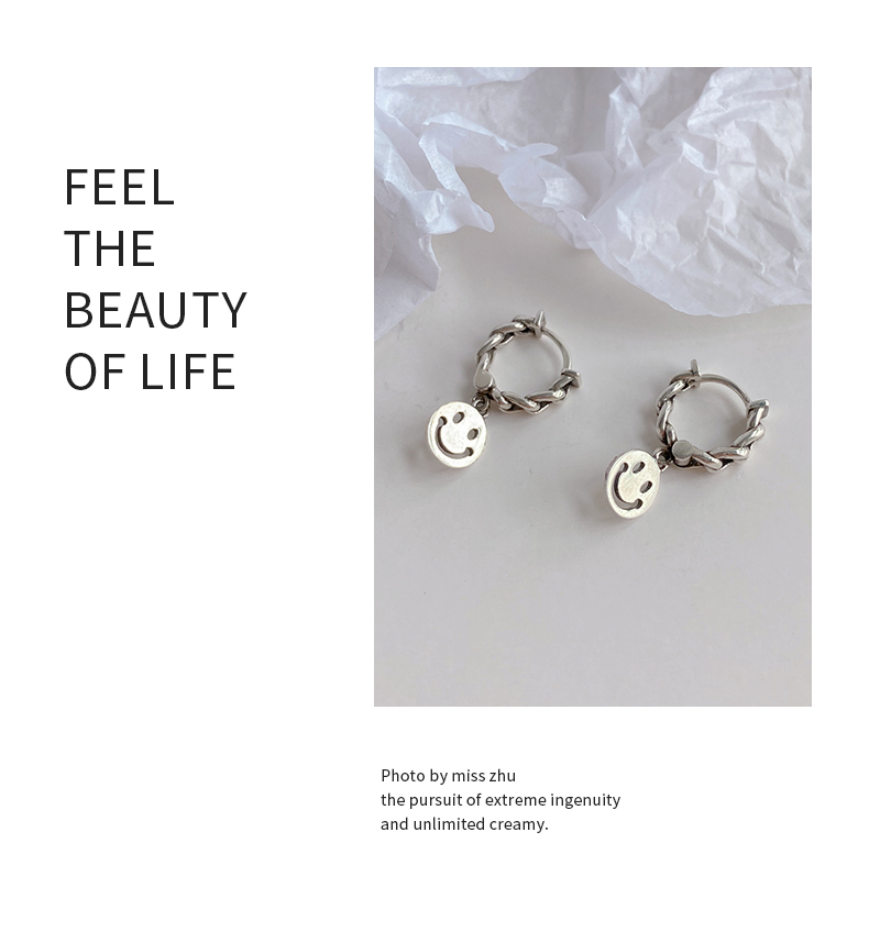 925純銀笑臉耳環女年新款潮耳釘韓版耳扣冷淡風耳圈微笑耳飾 4