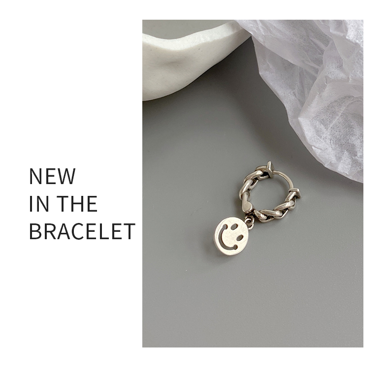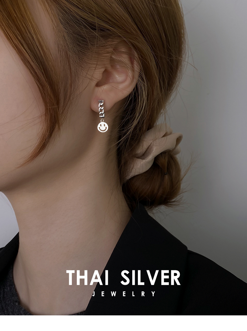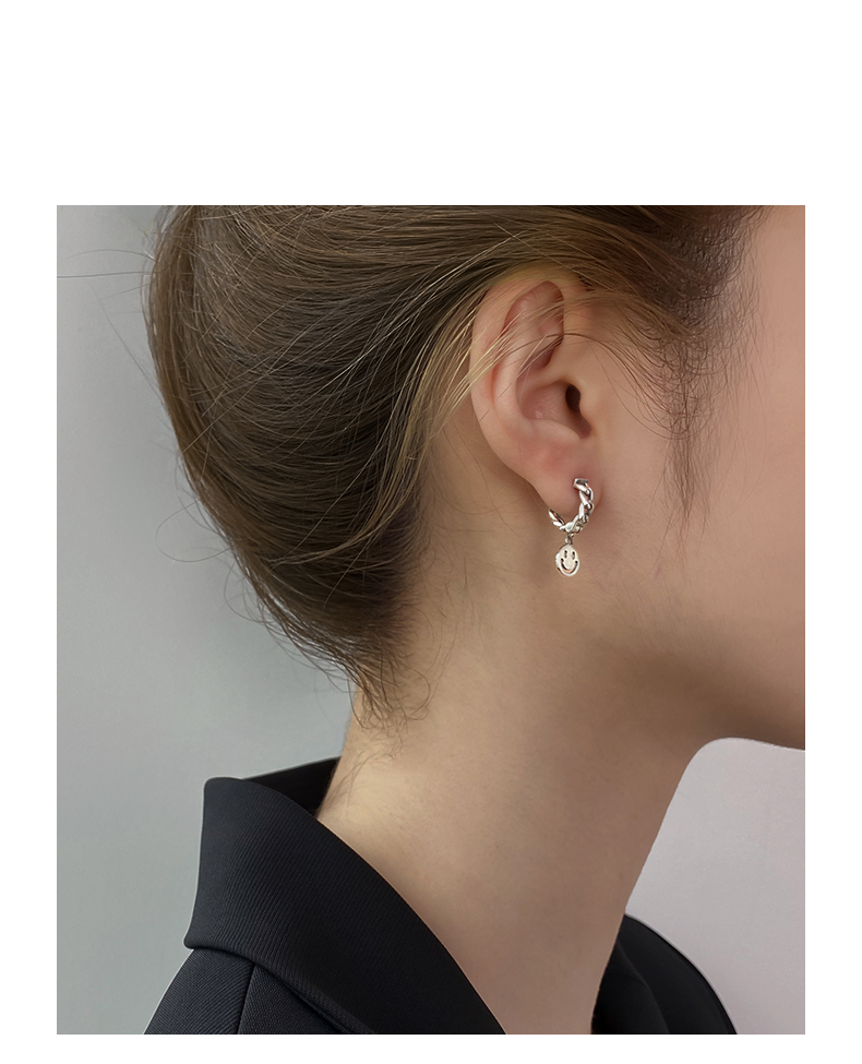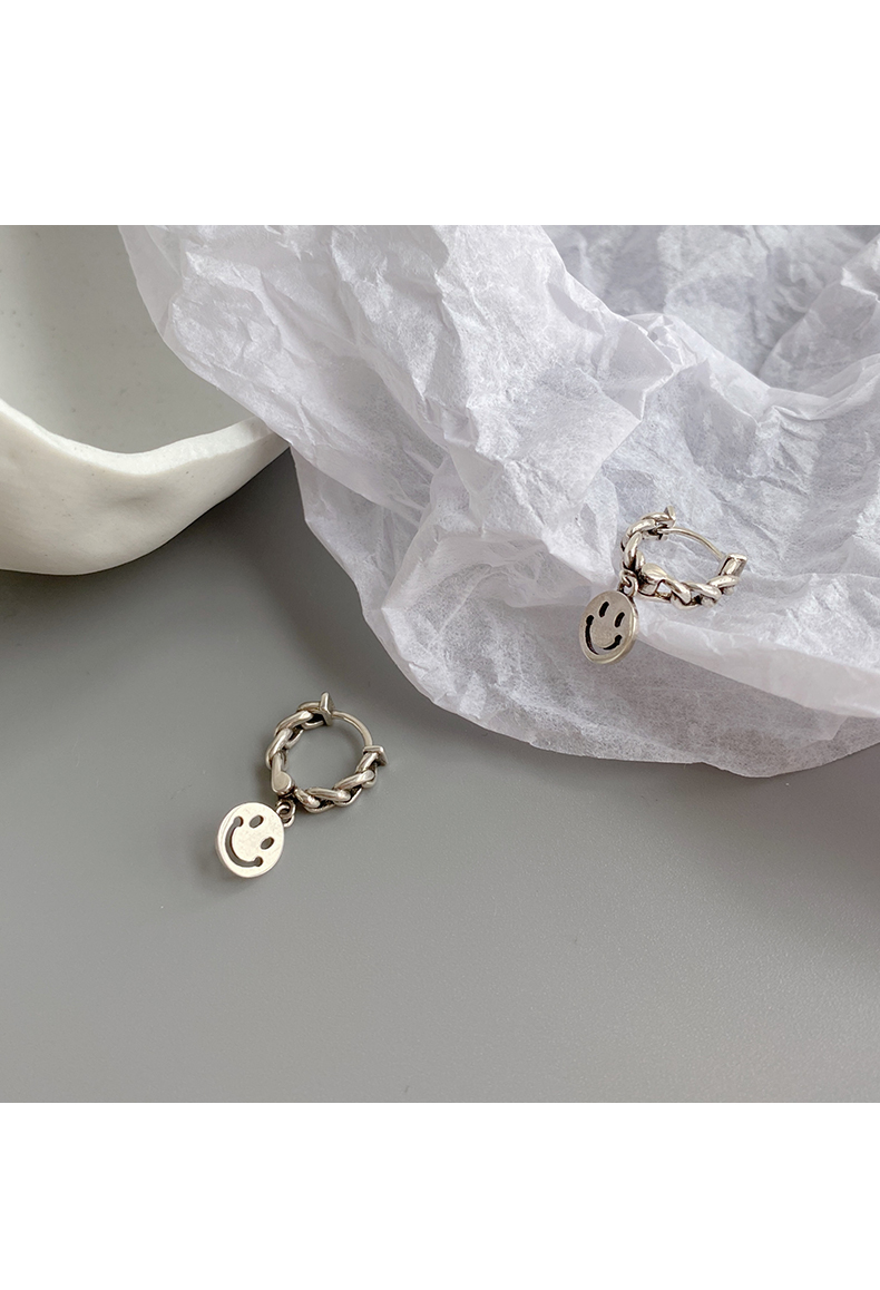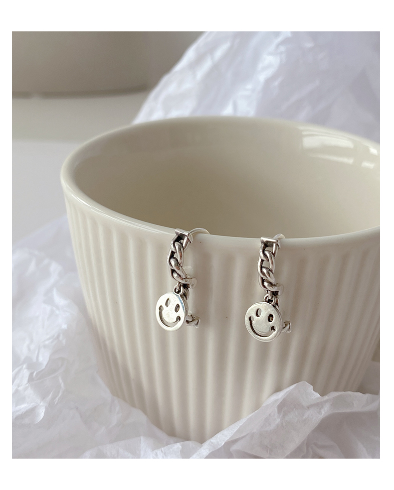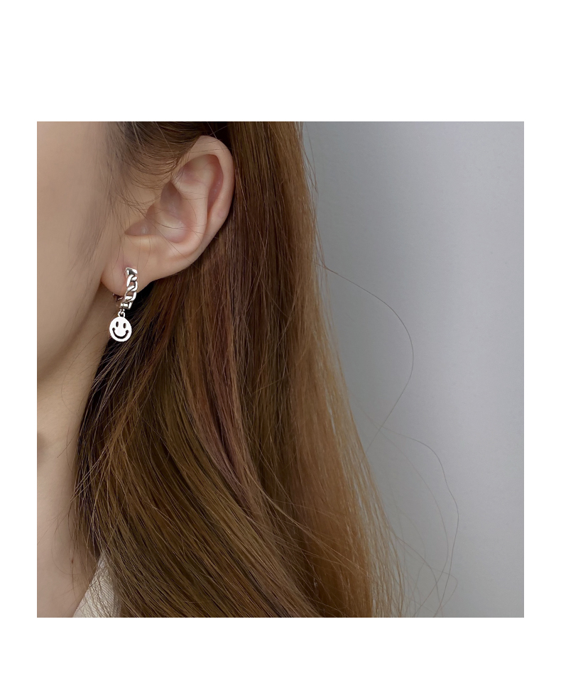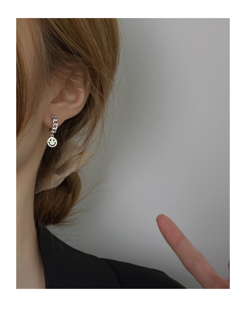 925純銀笑臉耳環女年新款潮耳釘韓版耳扣冷淡風耳圈微笑耳飾 1