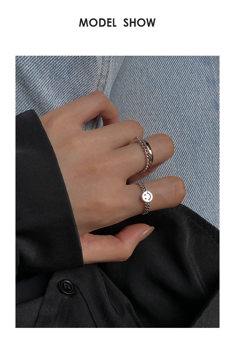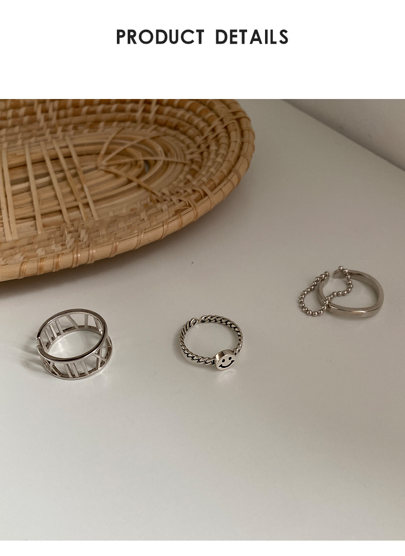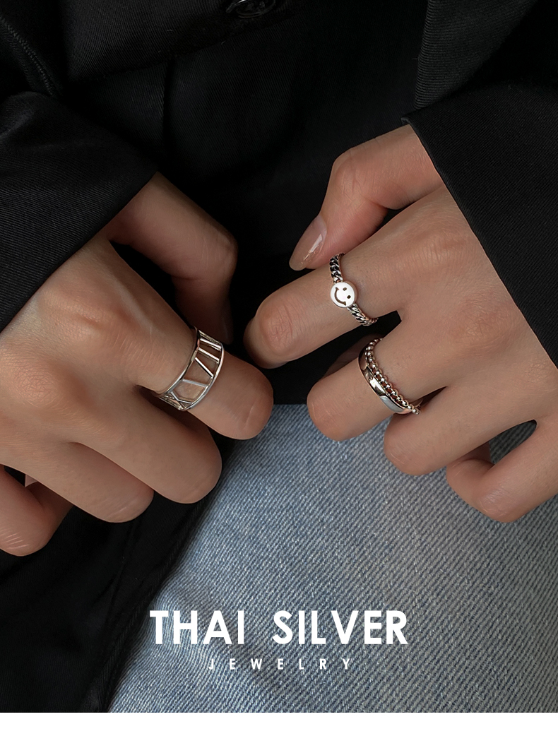 925純銀羅馬數字鏤空戒指女ins潮時尚笑臉個性冷淡風圓珠鏈食指戒 3