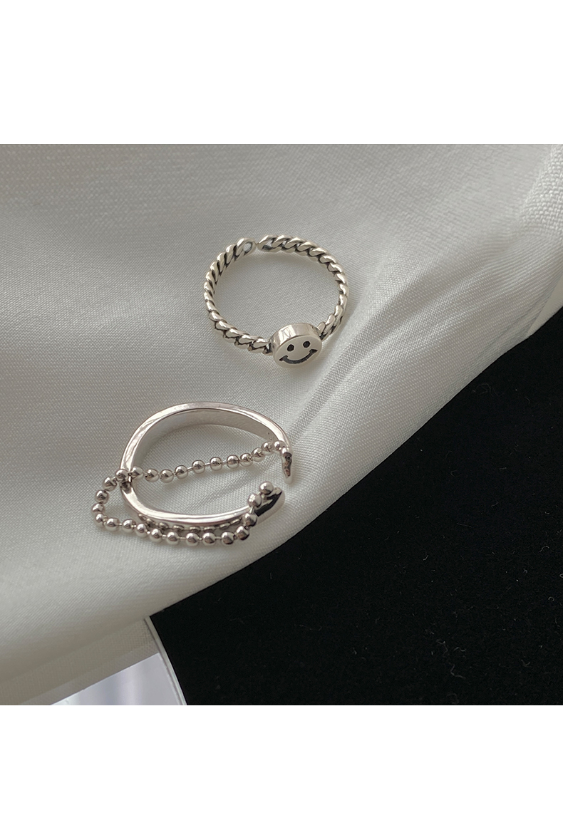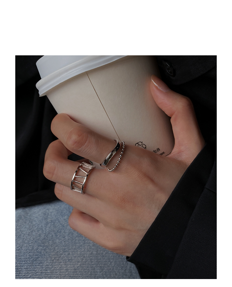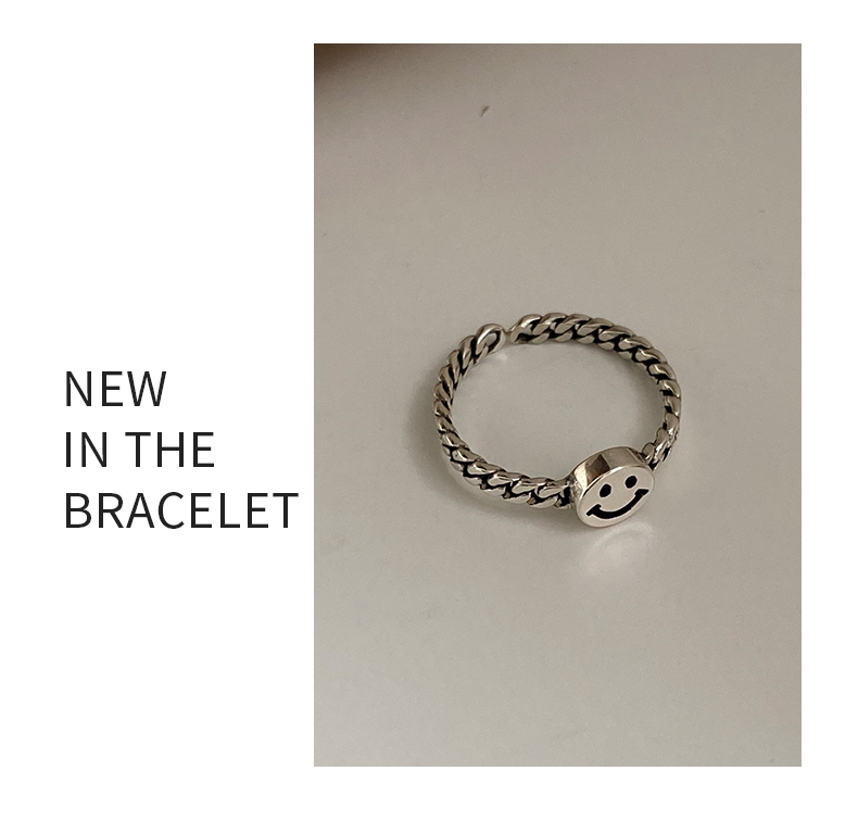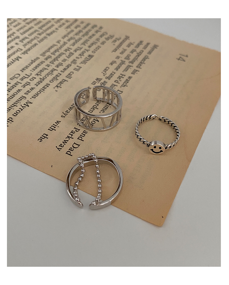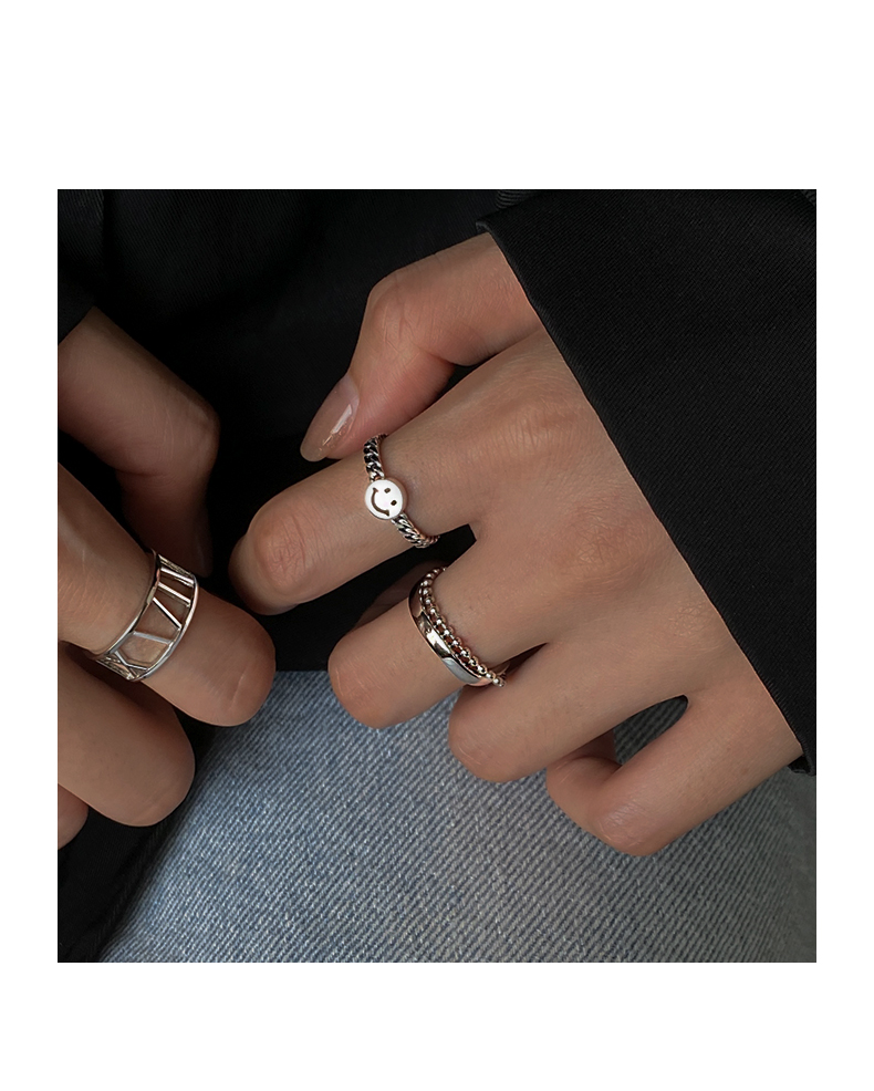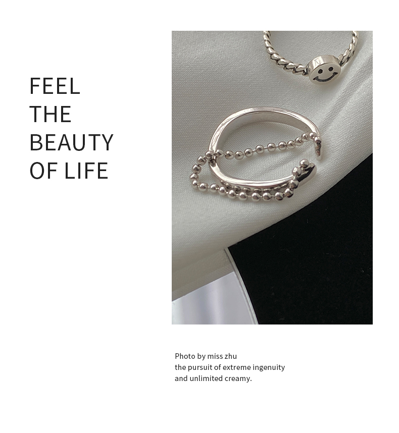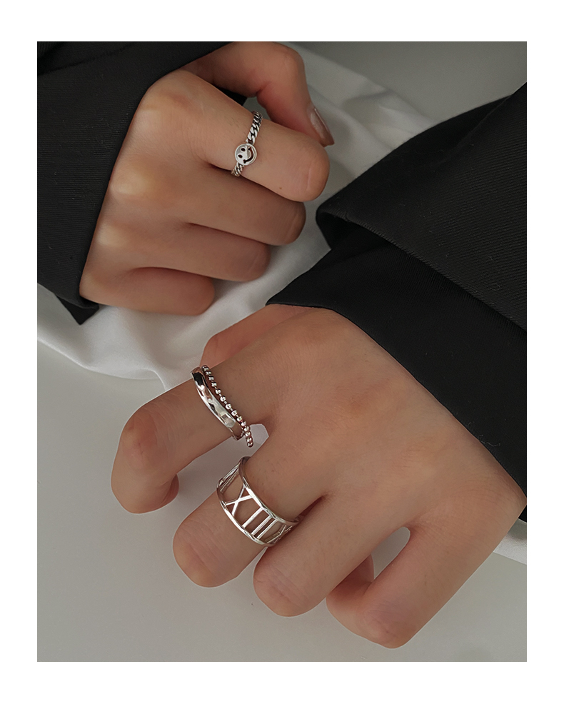 6. 925純銀羅馬數字鏤空戒指女ins潮時尚笑臉個性冷淡風圓珠鏈食指戒