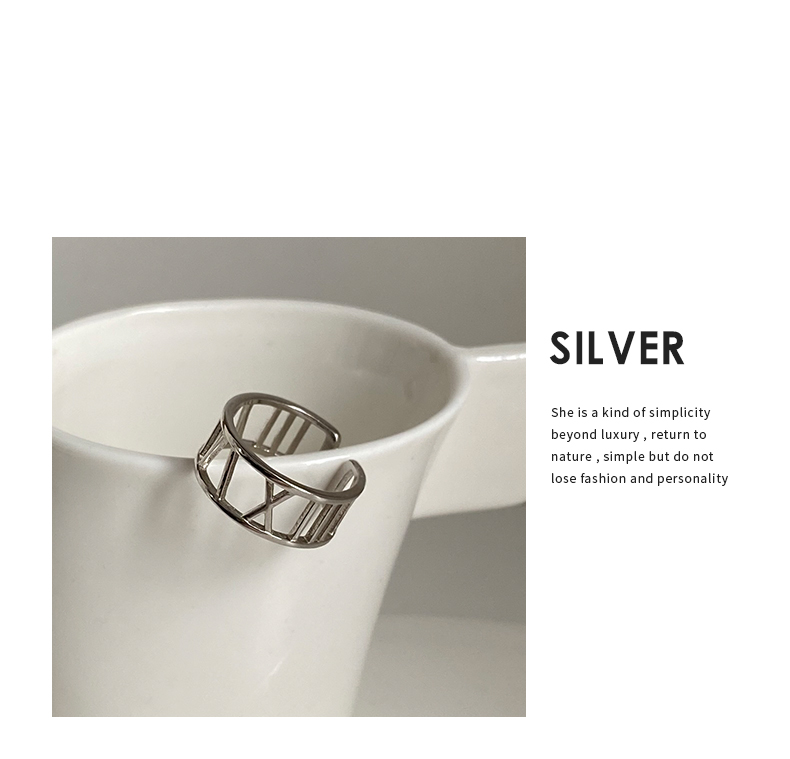 925純銀羅馬數字鏤空戒指女ins潮時尚笑臉個性冷淡風圓珠鏈食指戒 4