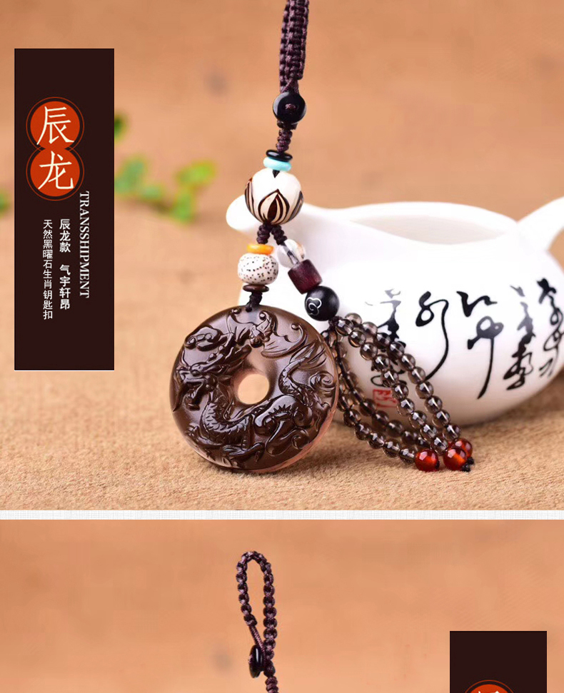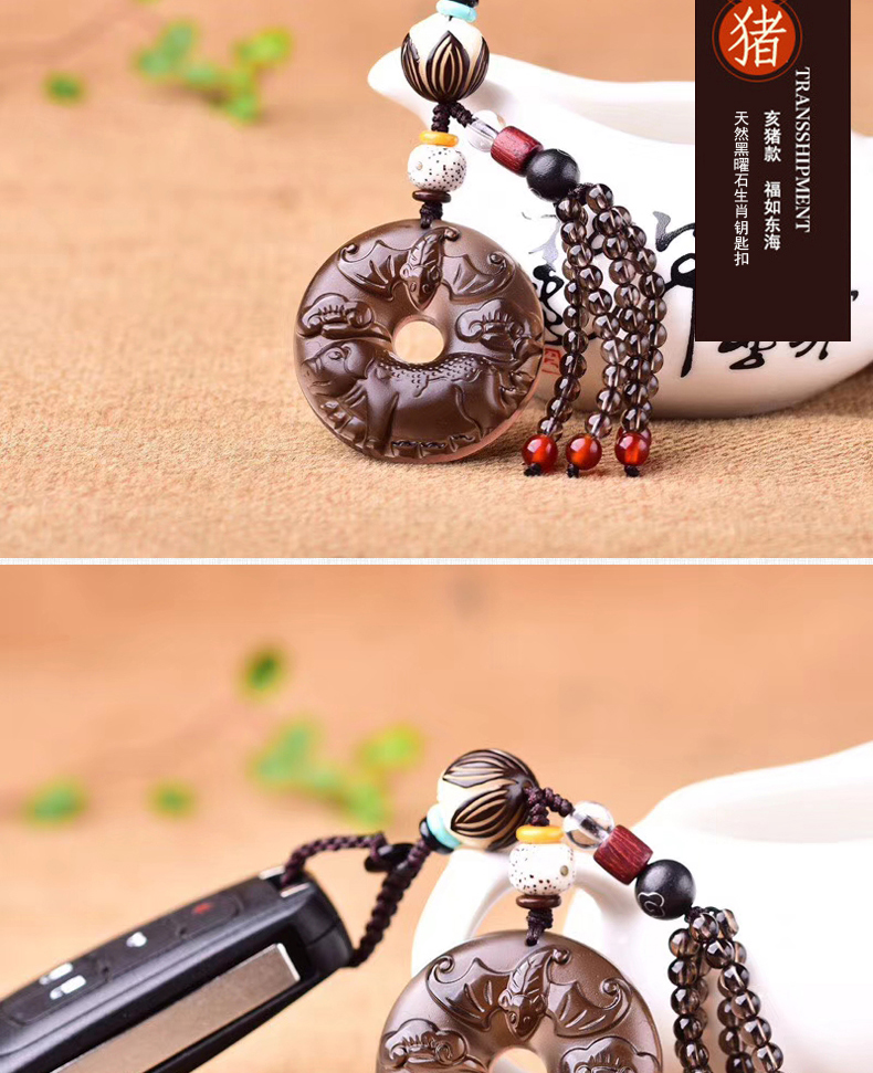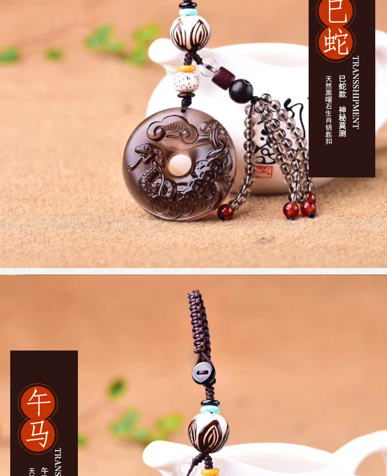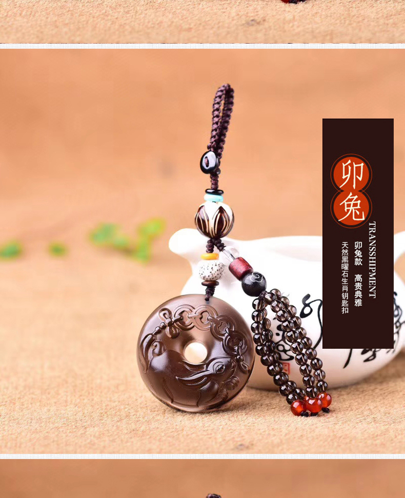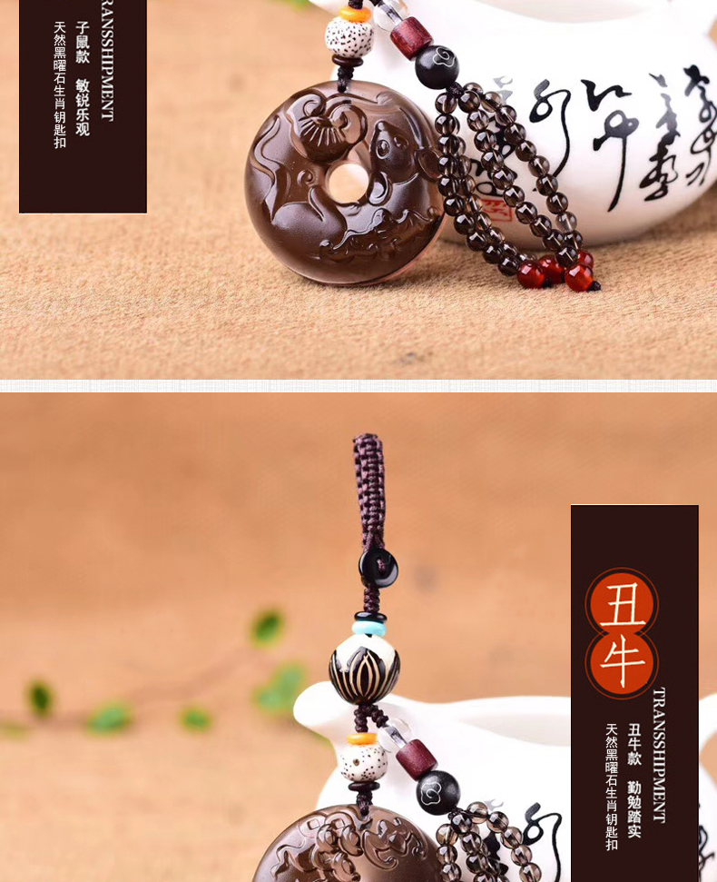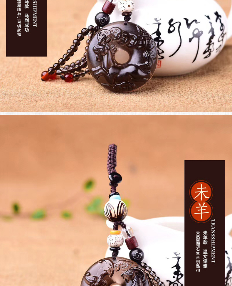 天然冰種黑曜石生肖羊平安扣鑰匙扣包掛 辟邪開運旺財保平安 4