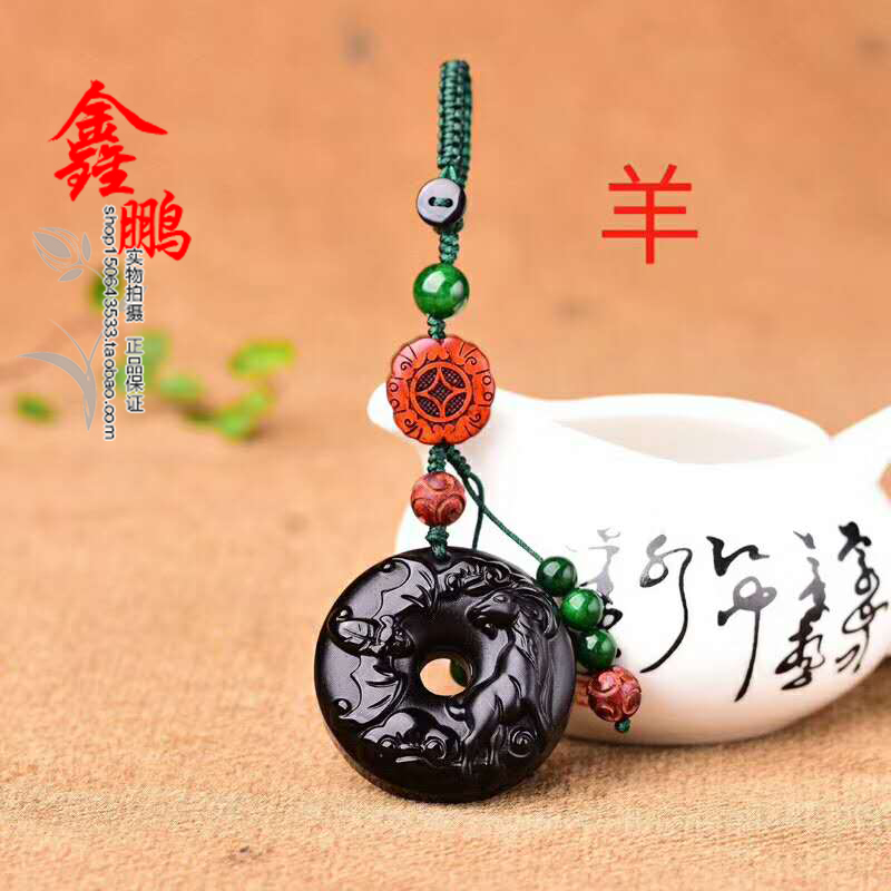 天然冰種黑曜石生肖羊平安扣鑰匙扣包掛 辟邪開運旺財保平安 0